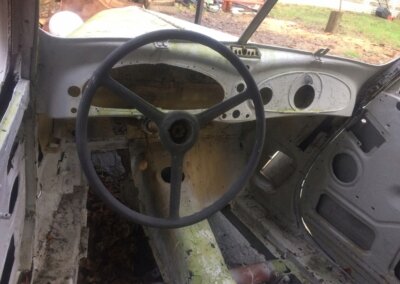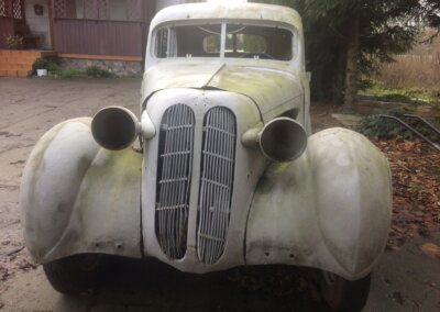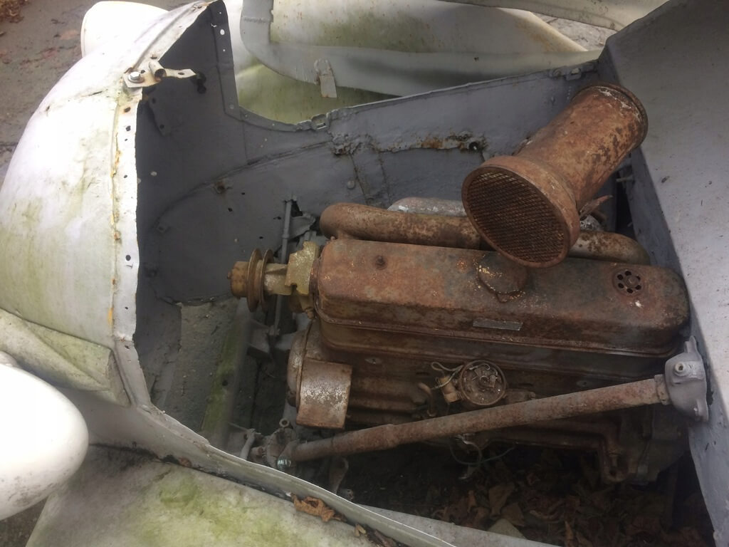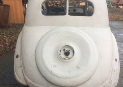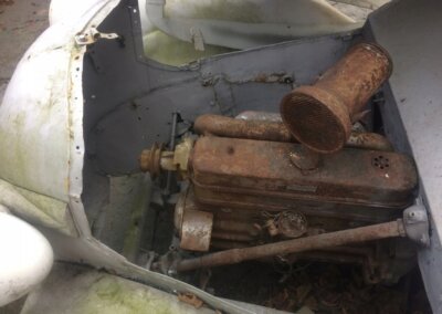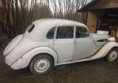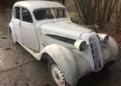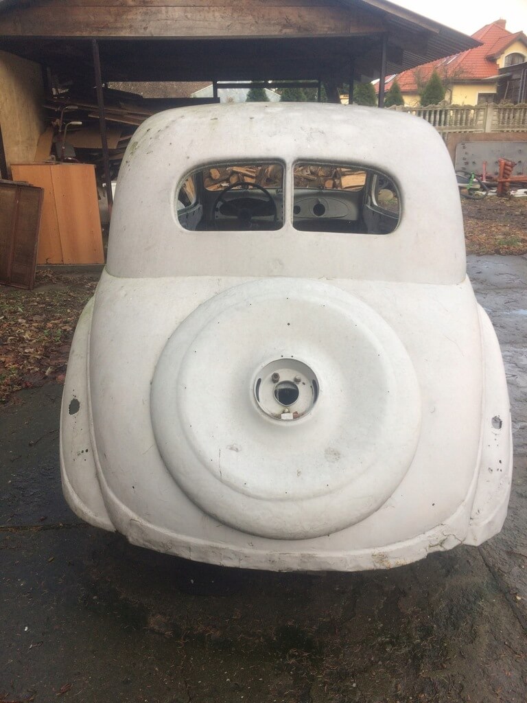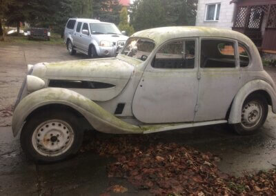 Stan samochodu widoczny na zdjęciach – do renowacji. Poza karoserią jest silnik (bez osprzętu), skrzynia biegów, kompletne zawieszenie, wszystkie szyby. Uwaga: Co bardzo istotne – samochód z udokumentowanym pochodzeniem. Do lat 70-tych zarejestrowany i użytkowany w Polsce, posiada polski dowód rejestracyjny z adnotacją “zdano tablice rejestracyjne”. Posiadam też kompletną dokumentację techniczną w postaci schematów niezbędną do profesjonalnej renowacji auta. Ostatnie zdjęcia przedstawiają taki sam samochód po renowacji. Poważnie zainteresowanych proszę o kontakt mailowy – poprzez zakładkę “Zadaj pytanie” lub sms – oddzwonię.
