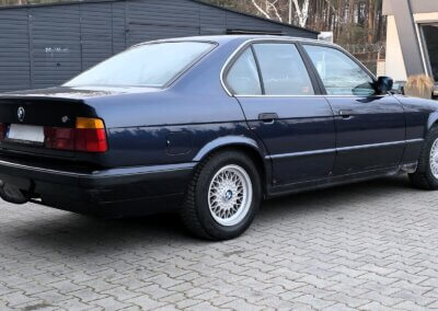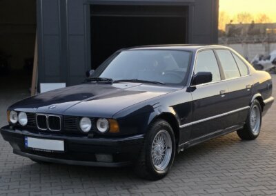 Witam, na sprzedaż BMW e34 535i z 3,5 litrowym silnikiem benzynowym o mocy 211 KM i manualną skrzynią biegów w kolorze Royal Blue wykonany w wersji Individual – obejmującym również wnętrze.
