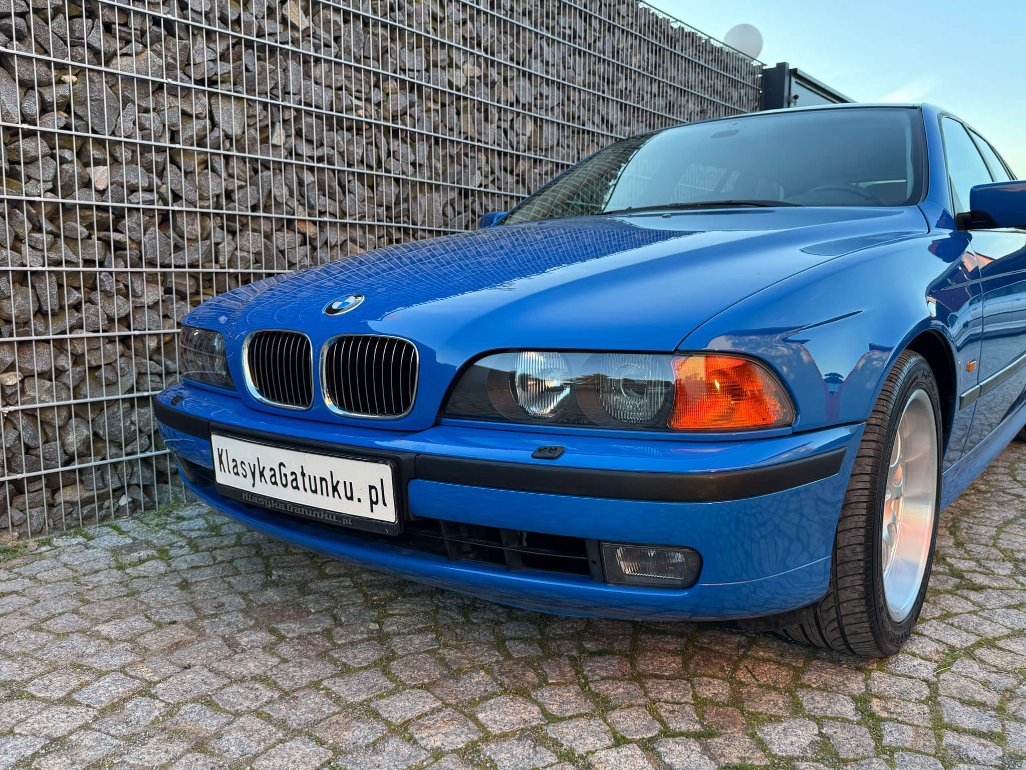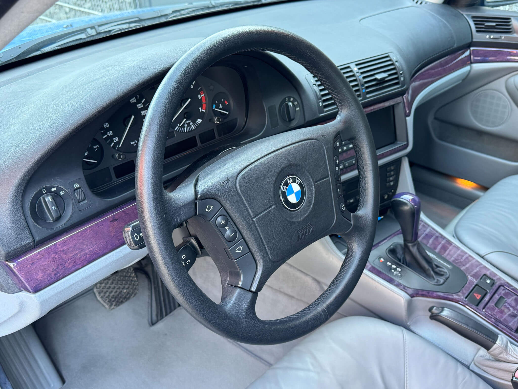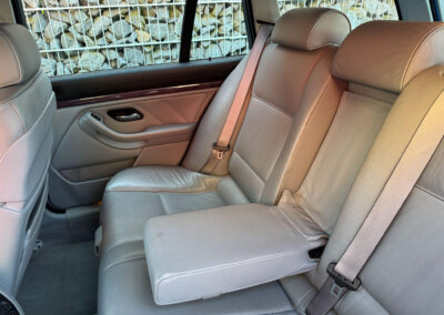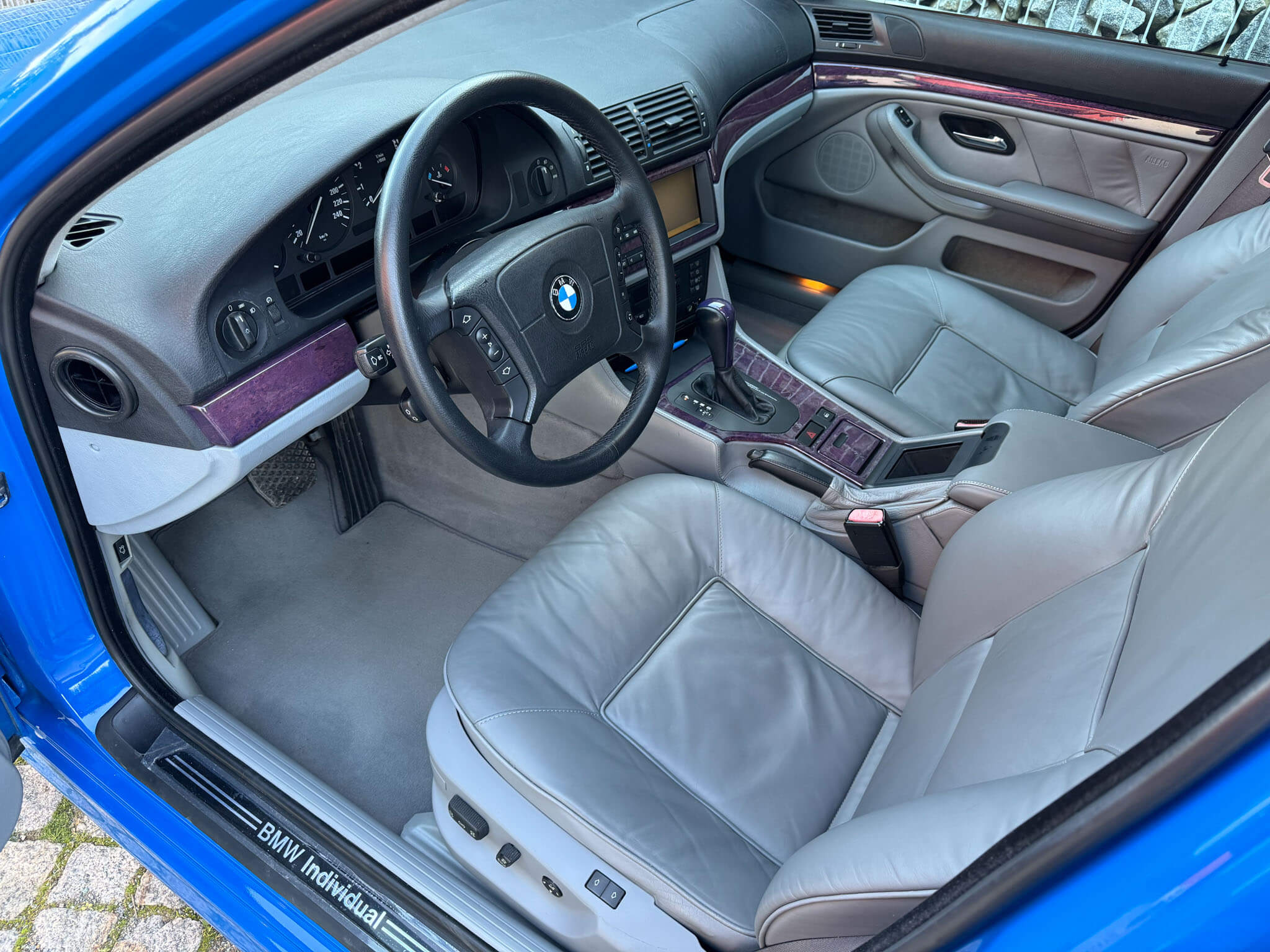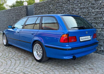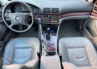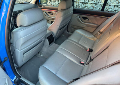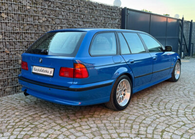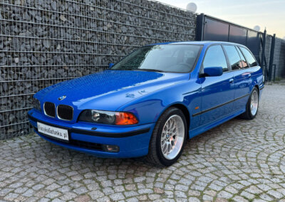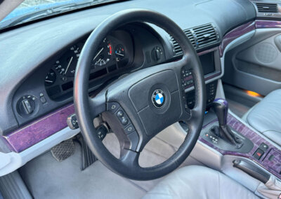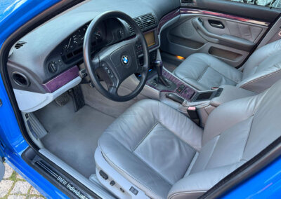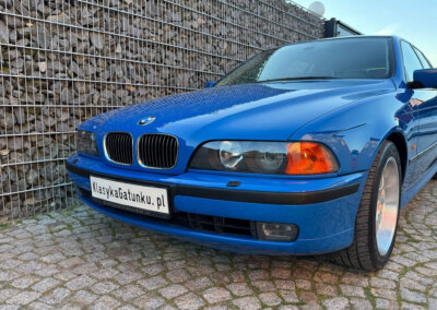 Przedmiotem sprzedaży jest BMW 540i serii E39 w kolorze „490 Sonderlackierung Santorinblau” z szarą skórzaną tapicerką “Vollleder Nappa Grau”. Samochód sprowadzony z Montagnola, Szwajcaria od spadkobiercy pierwszego właściciela. Zachowany w bardzo dobrym stanie z normalnymi śladami użytkowania i upływu czasu.