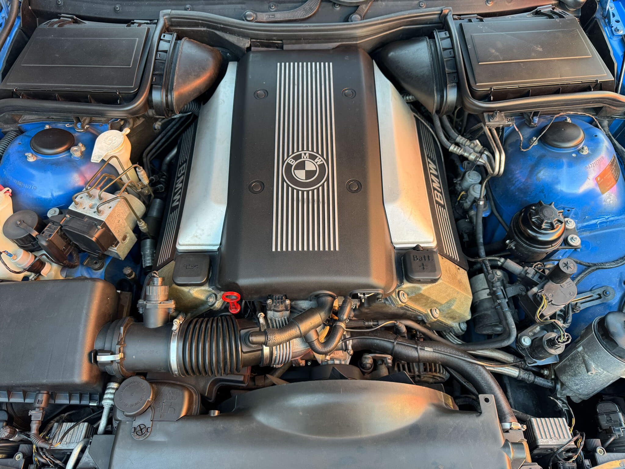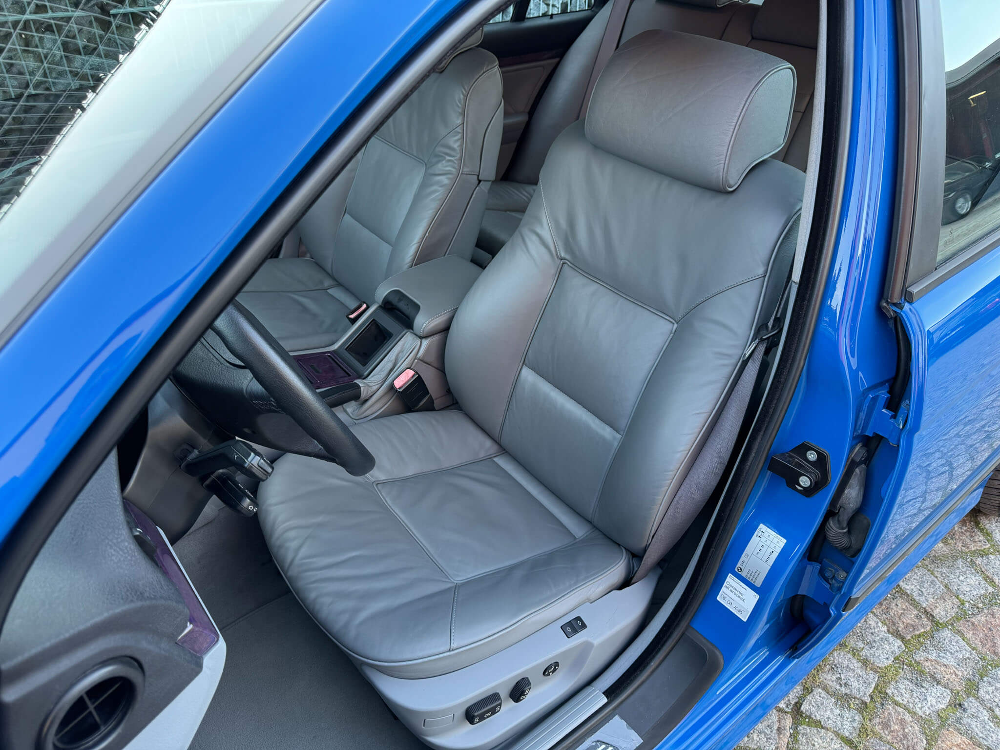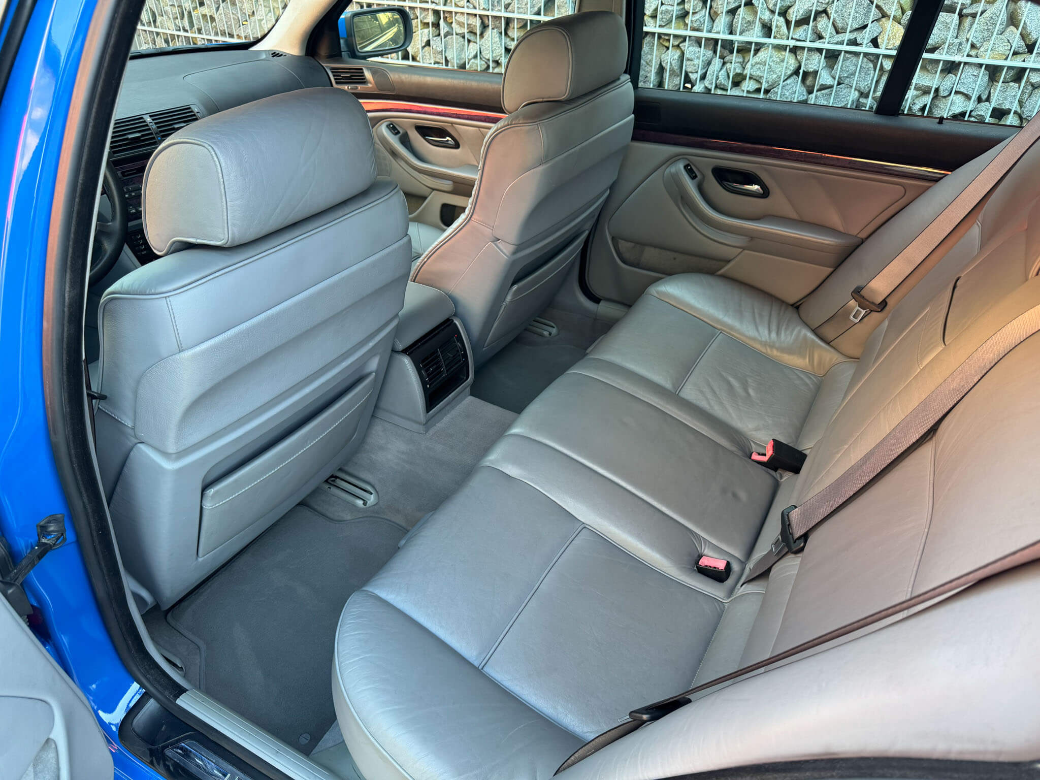 Przedmiotem sprzedaży jest BMW 540i serii E39 w kolorze „490 Sonderlackierung Santorinblau” z szarą skórzaną tapicerką “Vollleder Nappa Grau”. Samochód sprowadzony z Montagnola, Szwajcaria od spadkobiercy pierwszego właściciela. Zachowany w bardzo dobrym stanie z normalnymi śladami użytkowania i upływu czasu.