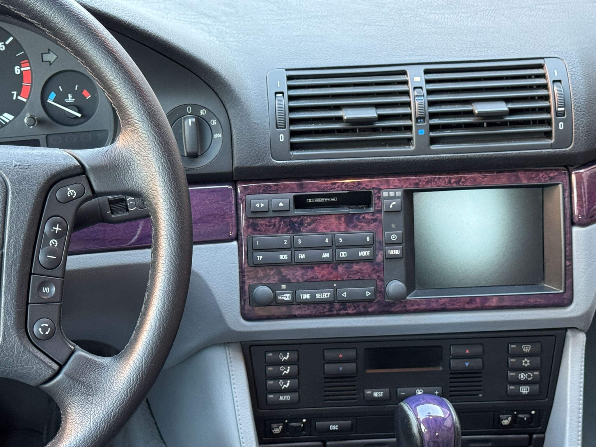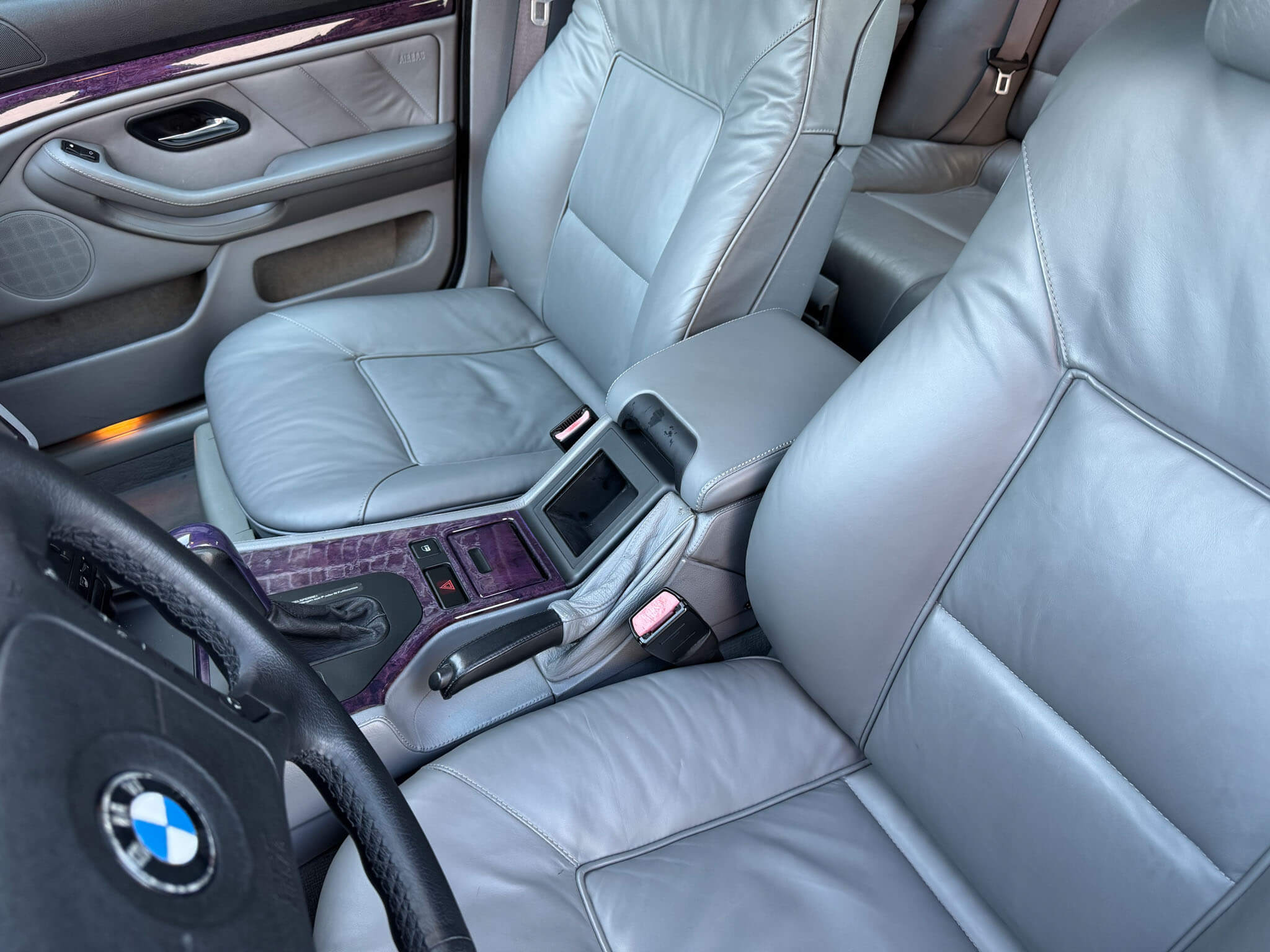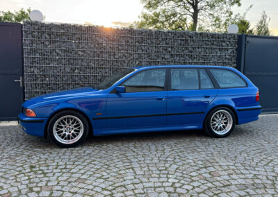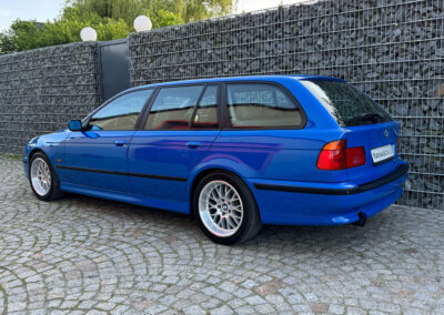 Szwajcarski kierowca rajdowy Loris K. nie mógł mieć zwykłego BMW. Do swojej willi w Montagnola nad jeziorem Lugano w 1998 roku zamówił 540i Touring w wyjątkowej kombinacji kolorystycznej. Cały samochód został wykonany jako “Sonderwunsch” na jego życzenie. Lakier i wnętrze z palety BMW Individual. Niesamowite naturalne drewno w kolorze fioletowym wykonane na życzenie. Nastepnie po odbiorze nowego pojazdu w Dingolfing właściciel wykonał następujące zmiany: montaż tuningowych amortyzatorów i sprężyn, sportowe katalizatory i sondy, felgi włoskiej firmy Fondmetal z szerokimi rantami. Właściciel osobiście (był konstruktorem silników) rozebrał silnik, wykonał obróbkę głowic oraz wymienił wałki rozrządu. Powstała tylko jedna sztuka BMW e39 w takiej konfiguracji. Samochód był użytkowany regularnie w latach 1998-2010 a następnie po śmierci właściciela stał. Pierwszy raz widzieliśmy ten pojazd w 2014 a w 2020 udało się nam go odkupić. Po latach wciąż jeździ fenomenalnie i wygląda zupełnie inaczej niż pozostałe „szare” egzemplarze…