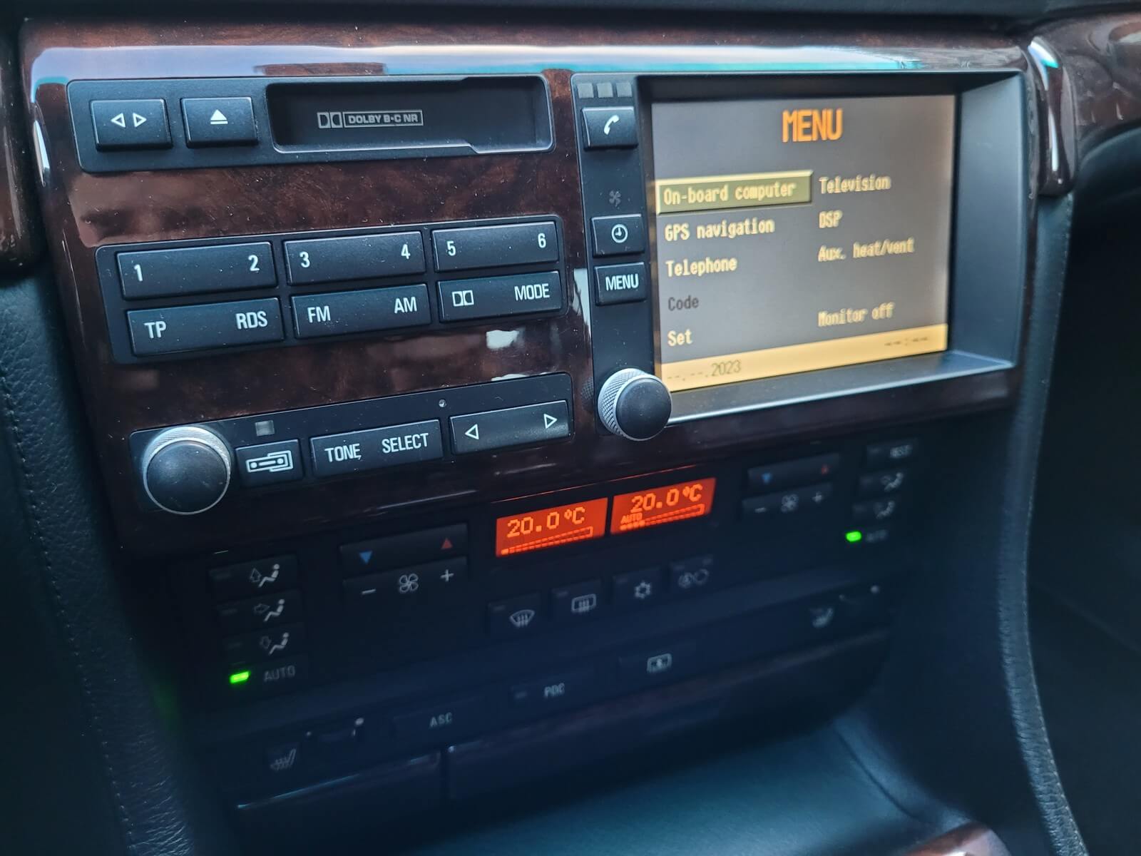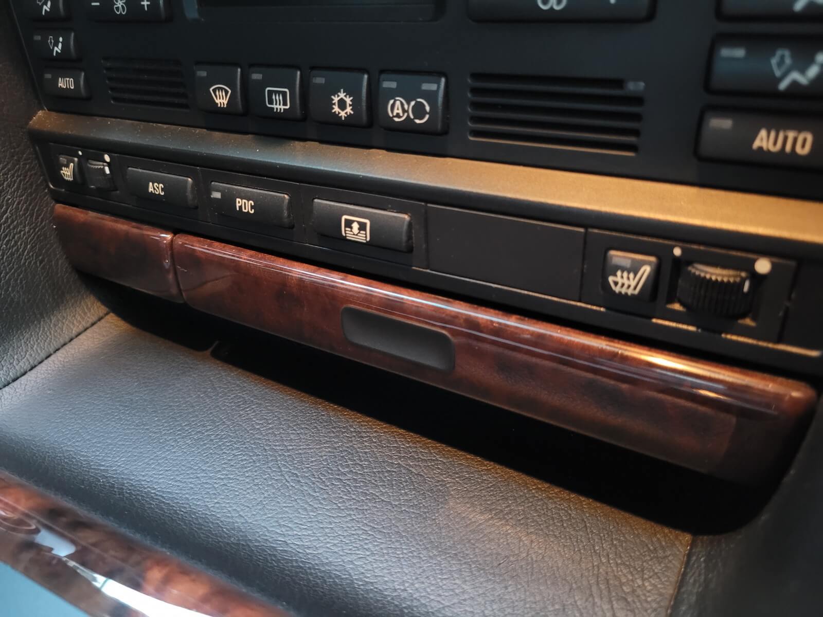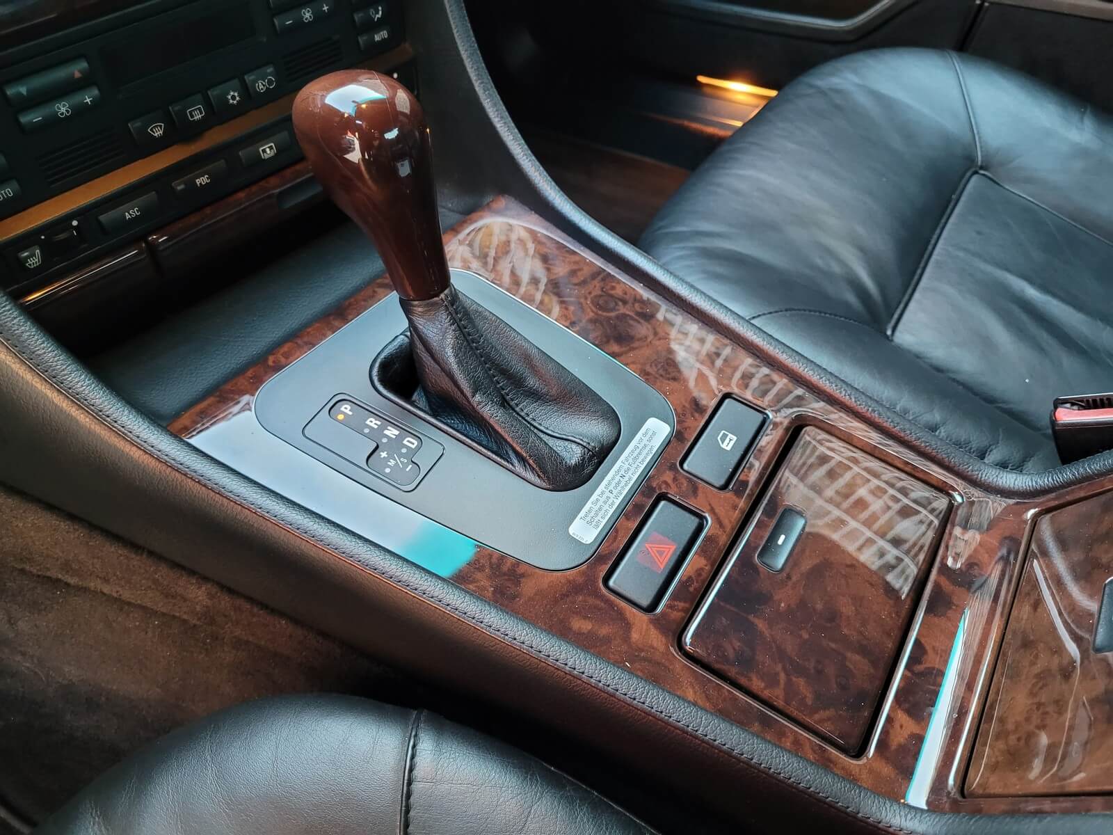 Wnętrze jest kompletne, zachowane w bardzo dobrym stanie, z niewielkimi śladami użytkowania. Tapicerka foteli i boczków są zadbane, nie posiadają uszkodzeń czy przetarć. Drewno w idealnym stanie, ma wciąż żywy kolor. Plastiki matowe. Podsufitka jak nowa. Wyświetlacze bez martwych pikseli. Oryginalny zestaw dywaników welurowych.
