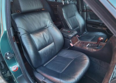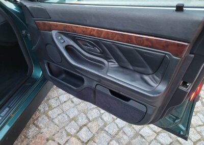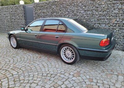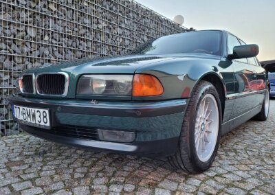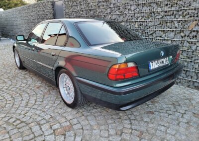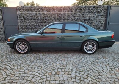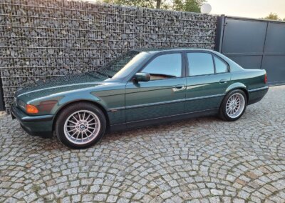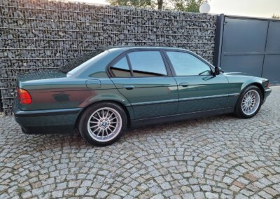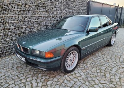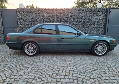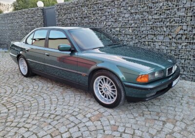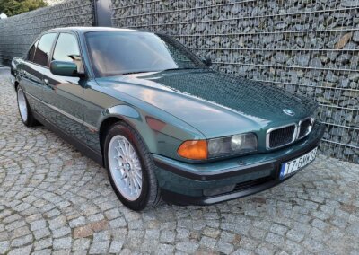 Przedmiotem sprzedaży jest BMW 735i serii e38 w bardzo rzadkim kolorze „vermont-grun metallic” z czarną skórzaną tapicerką nappa i pakietem S339 Shadow-line charakteryzujący się m.in. czarnymi listwali woków szyb. Egzemplarz przedliftingowy, bardzo bogato wyposażony m.in. w czarną podsufitkę z alcantary, 18 calowe felgi Styling 32, skórzaną i podgrzewaną tapicerke nappa, zmieniarke 6x CD, telefonu BMW, Xenonów czy nawigacji. Sprowadzony w 2016r. z Niemiec z Chemitz, od pierwszego właściciela z przebiegiem około 170 tys km. Zachowany w bardzo dobrym stanie z drobnymi śladami użytkowania. Wraz z samochodem dokumentacja serwisowa w oryginalnym etui, 4 oryginalne kluczyki oraz rachunki za czesci z salonu BMW.