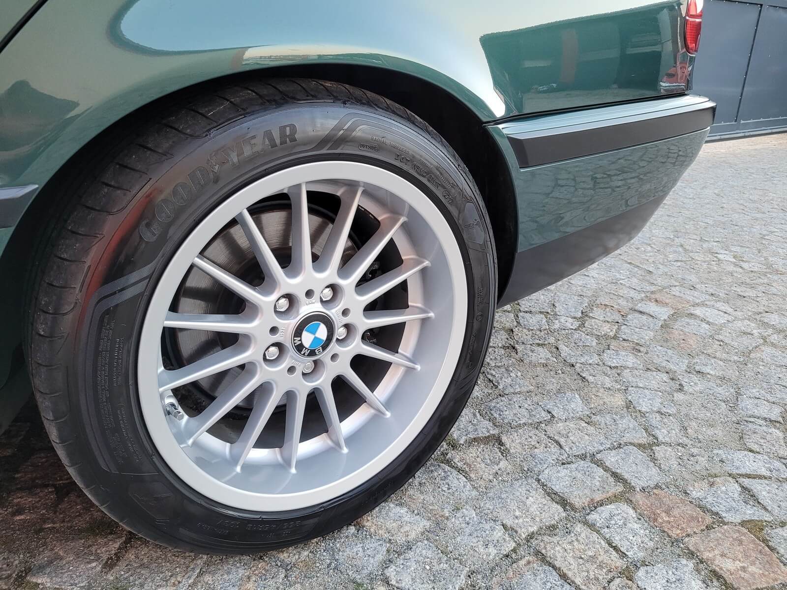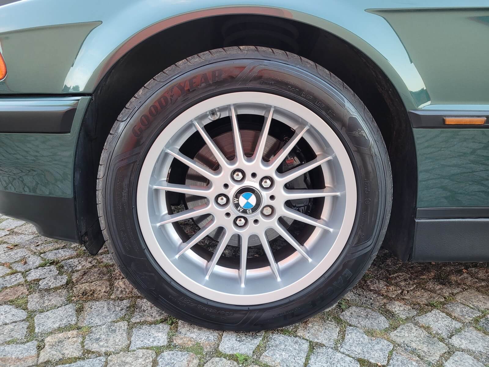 Felgi Styling 32 w idealnym stanie, praktycznie jak nowe, nigdy nie były odnawiane. Komplet letnich opon klasy premium Goodyear w dobrym stanie.