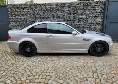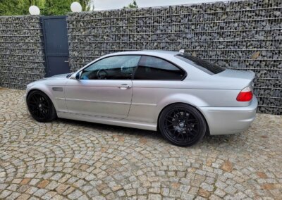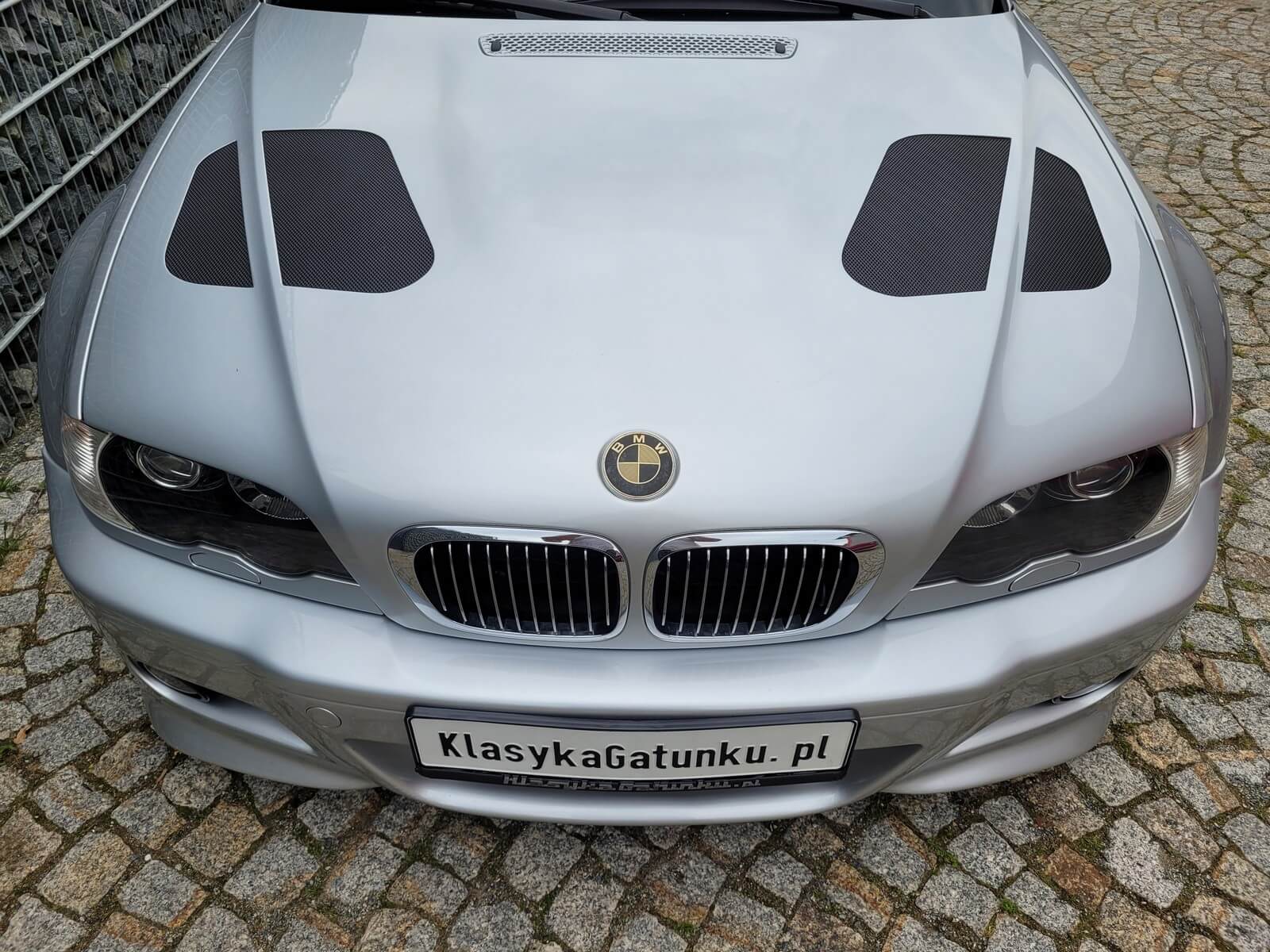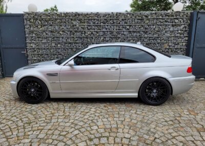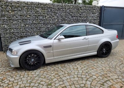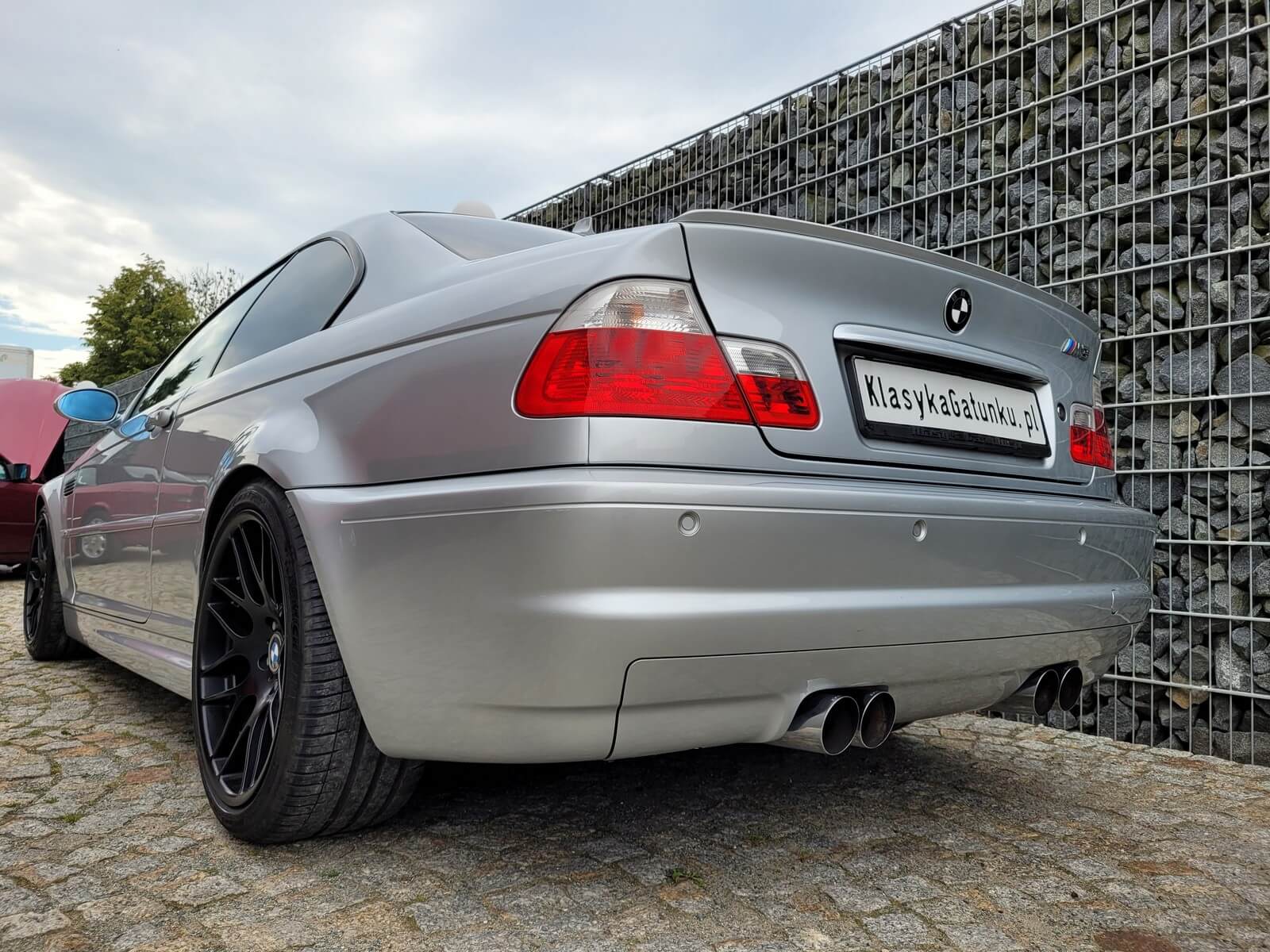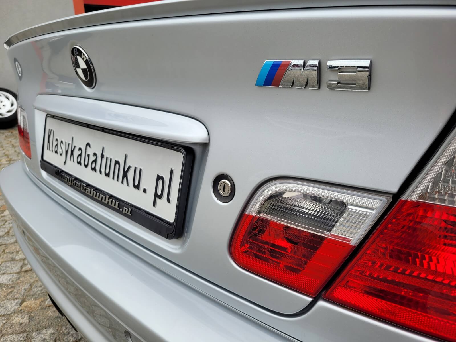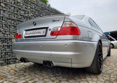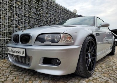 Przedmiotem sprzedaży jest BMW e46 M3 w kolorze „Titansilbermetalic” z czarną skórzaną tapicerką. Sprowadzony z Szwajcarii 15 lat temu. Od 12 lat w rękach tego samego właściciela, używany sporadycznie, przez ten czas zaledwie 8 tys km. Na wyposażeniu nagłośnienie Harman/Kardon, wydech końcowy Eisenmann m4 wykonany z stali nierdzewnej, obniżone zawieszenie zestaw Hamann, wydech środkowy Hamann, felgi CSL, oryginalny telefon Motorola oraz zestaw ESS Tuning z kompresorem Vortech, który pozwala podnieść moc silnika do 525 KM.