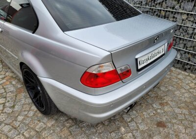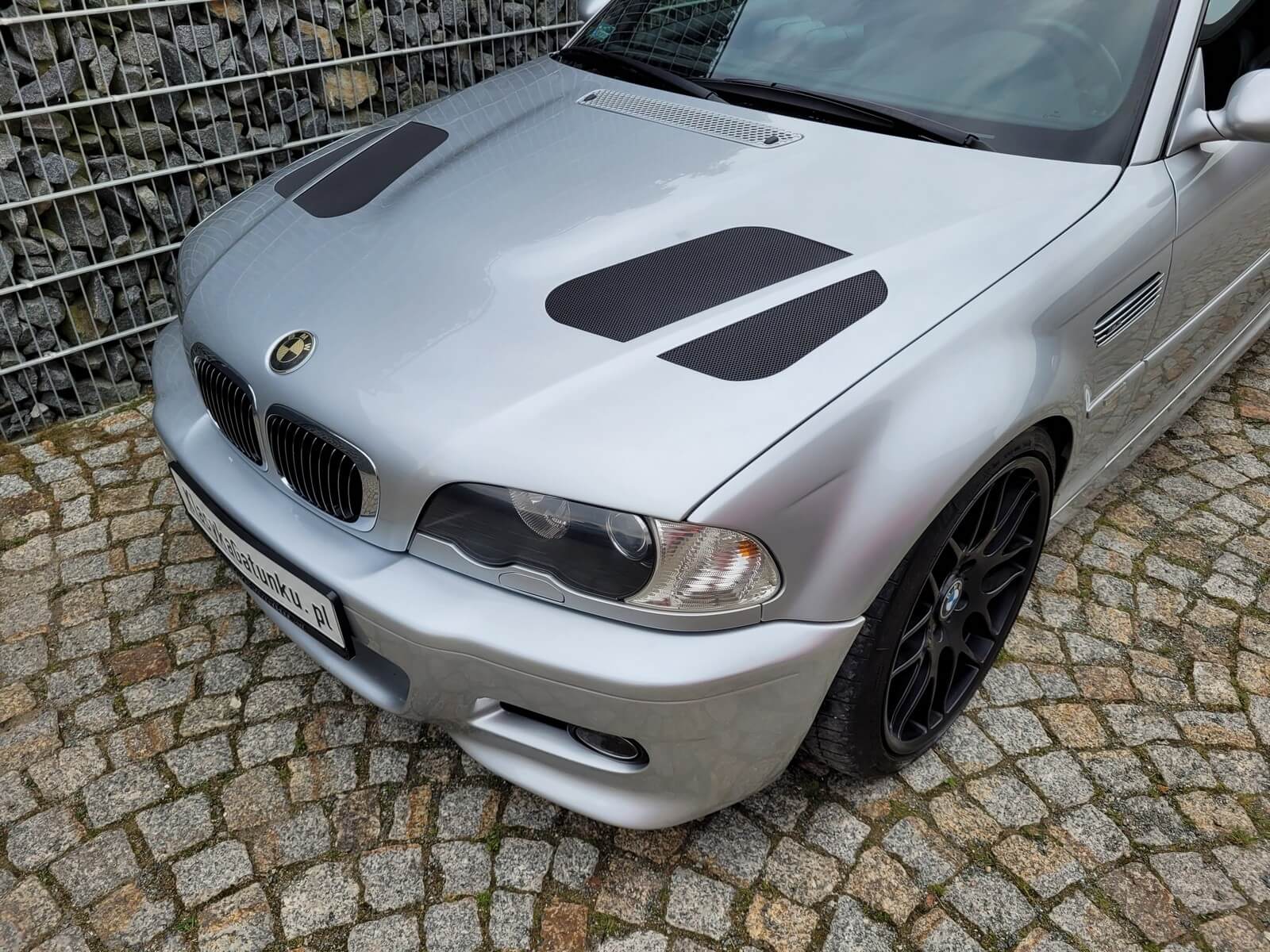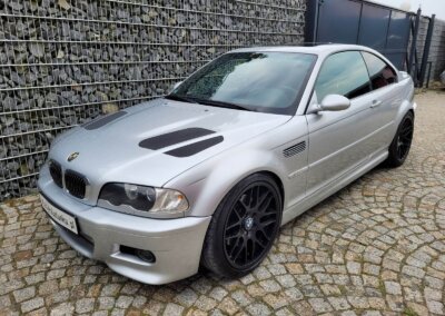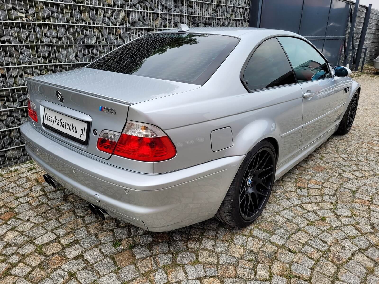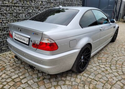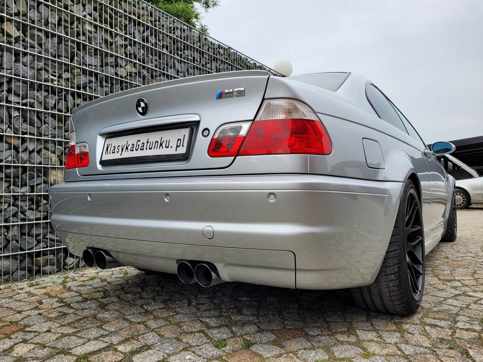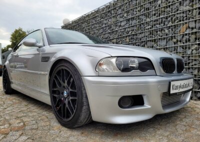 Przedmiotem sprzedaży jest BMW e46 M3 w kolorze „Titansilbermetalic” z czarną skórzaną tapicerką. Sprowadzony z Szwajcarii 15 lat temu. Od 12 lat w rękach tego samego właściciela, używany sporadycznie, przez ten czas zaledwie 8 tys km. Na wyposażeniu nagłośnienie Harman/Kardon, wydech końcowy Eisenmann m4 wykonany z stali nierdzewnej, obniżone zawieszenie zestaw Hamann, wydech środkowy Hamann, felgi CSL, oryginalny telefon Motorola oraz zestaw ESS Tuning z kompresorem Vortech, który pozwala podnieść moc silnika do 525 KM.
