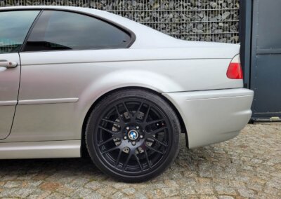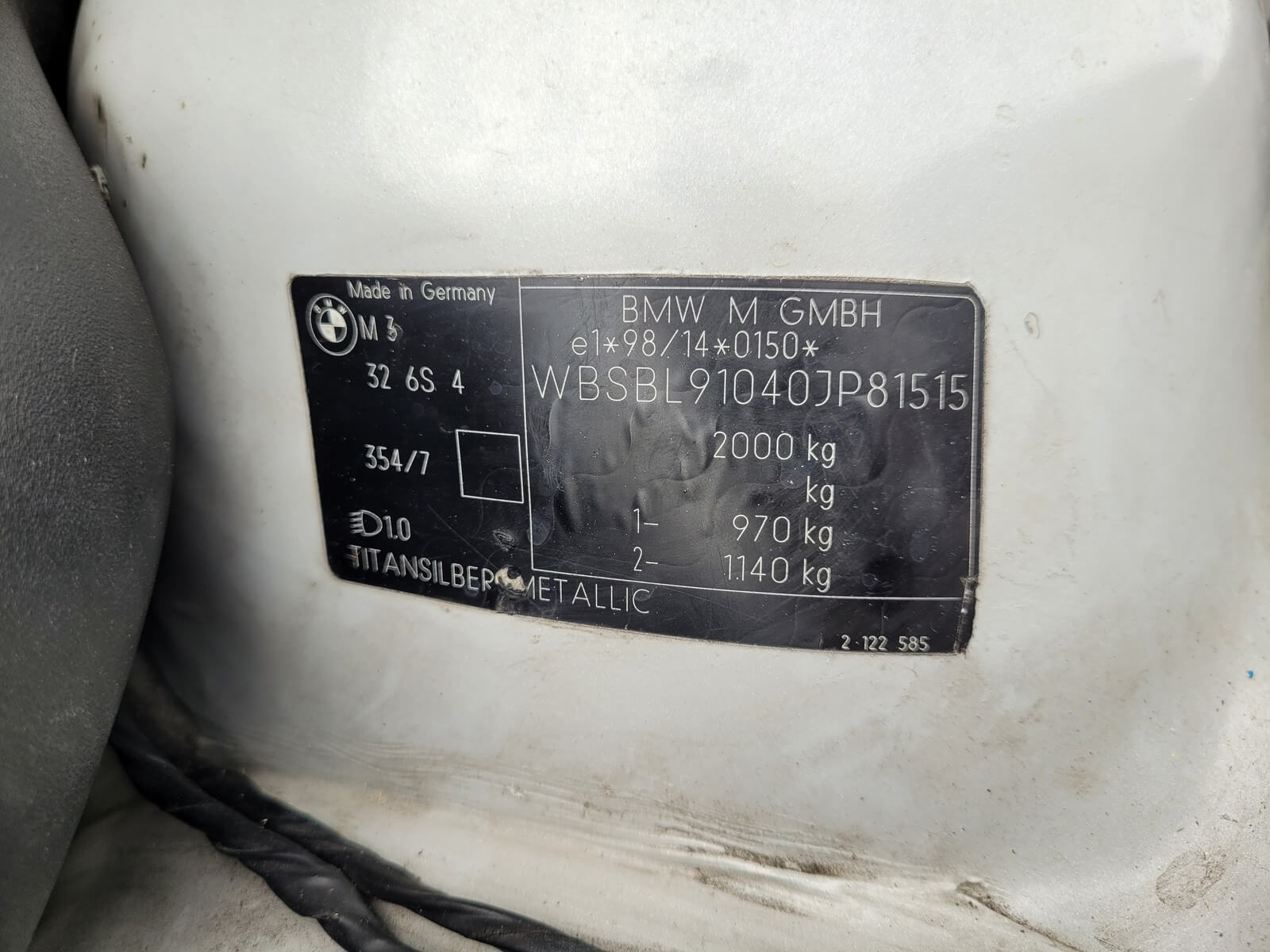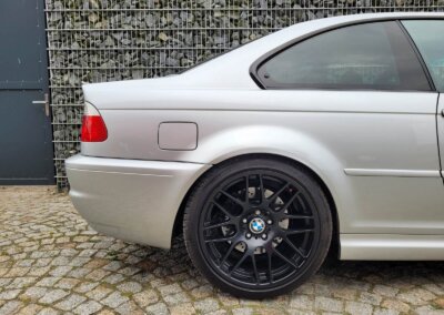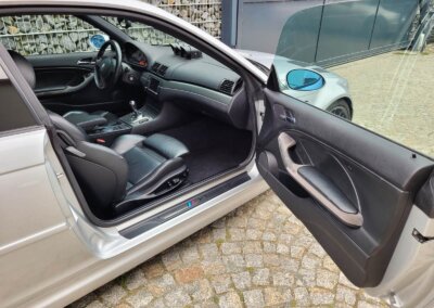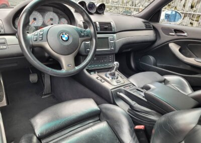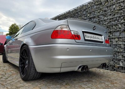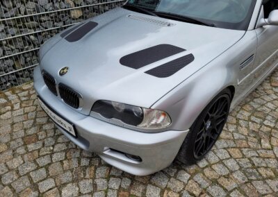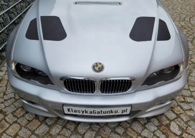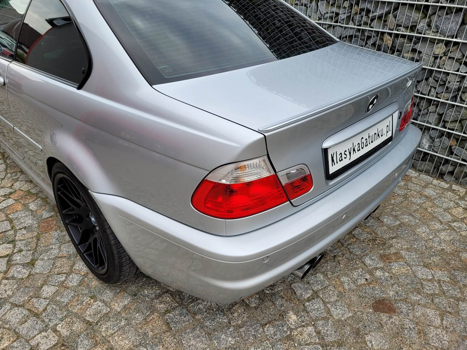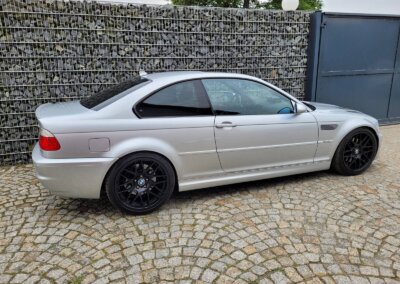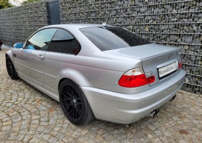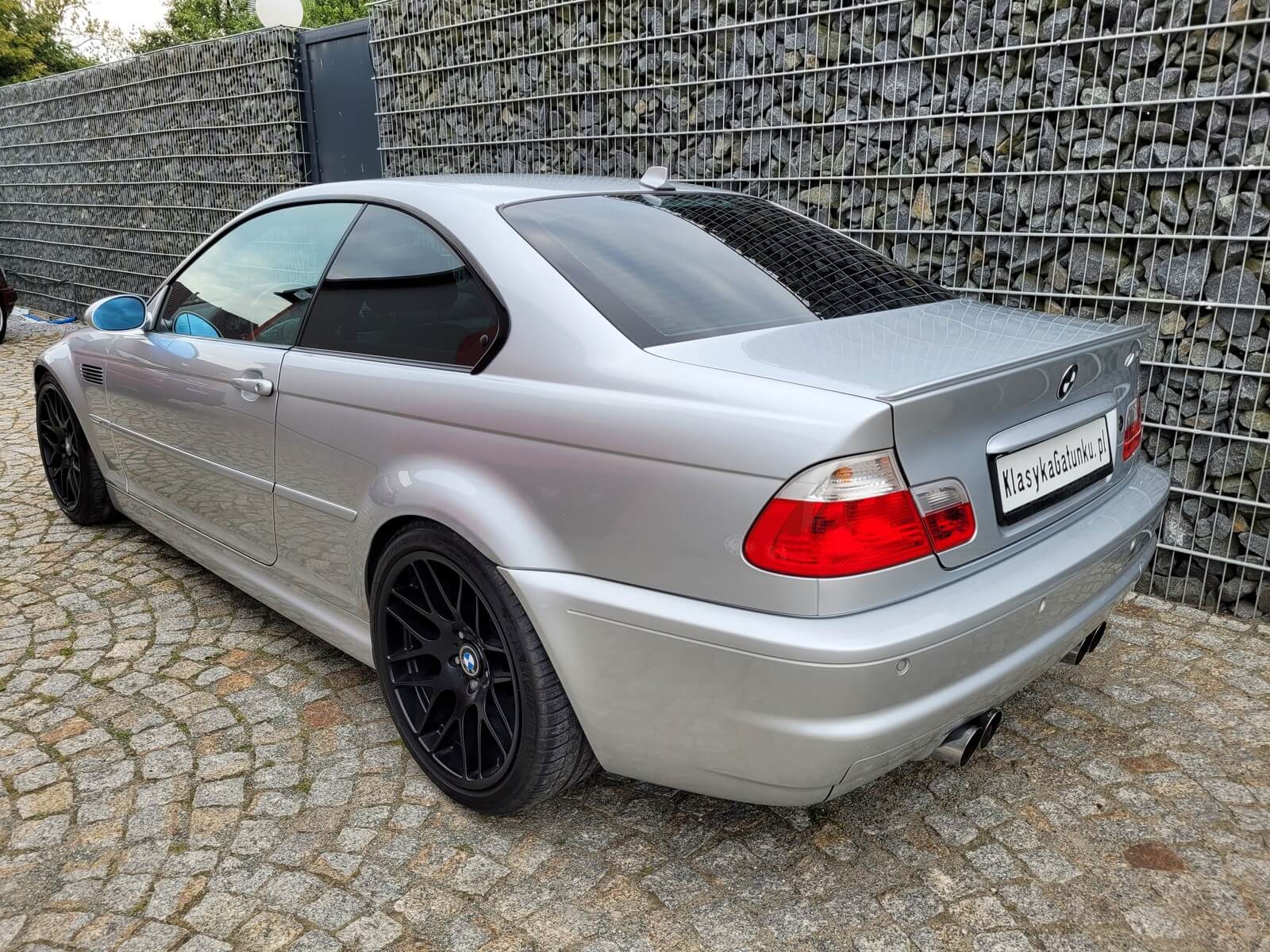 Przedmiotem sprzedaży jest BMW e46 M3 w kolorze „Titansilbermetalic” z czarną skórzaną tapicerką. Sprowadzony z Szwajcarii 15 lat temu. Od 12 lat w rękach tego samego właściciela, używany sporadycznie, przez ten czas zaledwie 8 tys km. Na wyposażeniu nagłośnienie Harman/Kardon, wydech końcowy Eisenmann m4 wykonany z stali nierdzewnej, obniżone zawieszenie zestaw Hamann, wydech środkowy Hamann, felgi CSL, oryginalny telefon Motorola oraz zestaw ESS Tuning z kompresorem Vortech, który pozwala podnieść moc silnika do 525 KM.