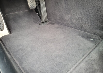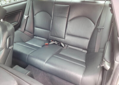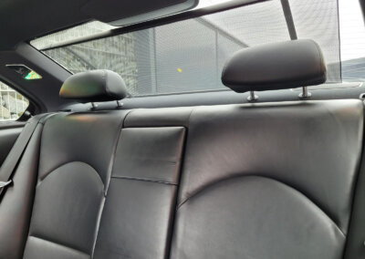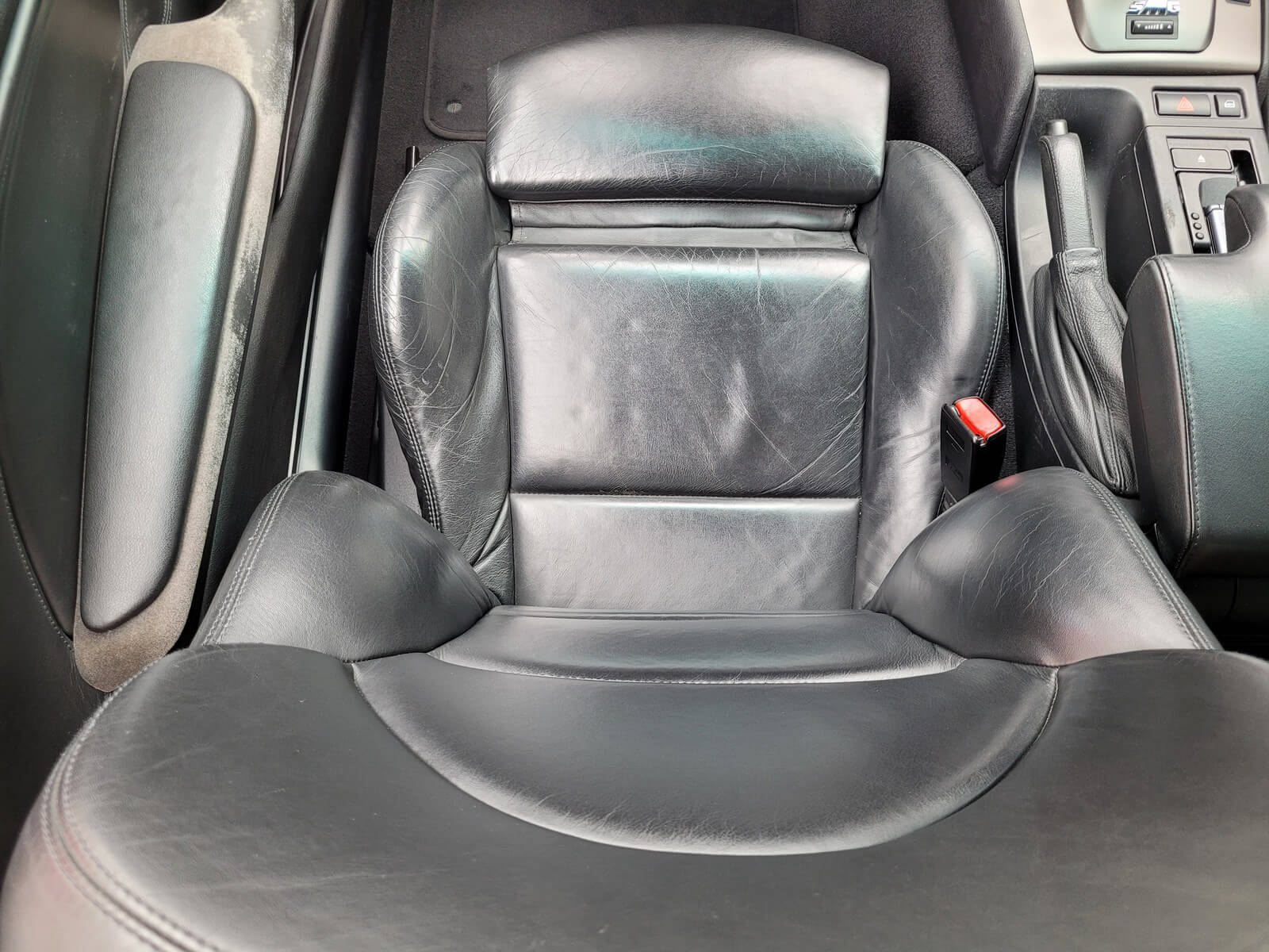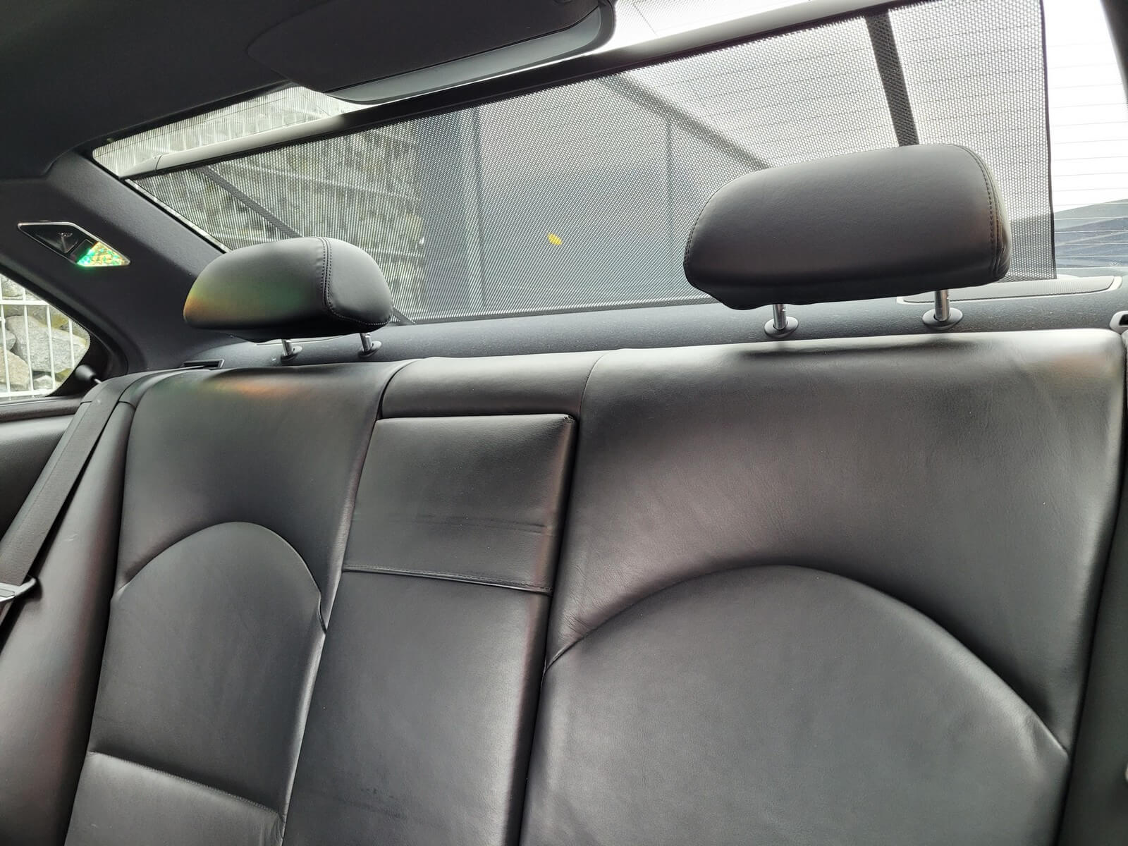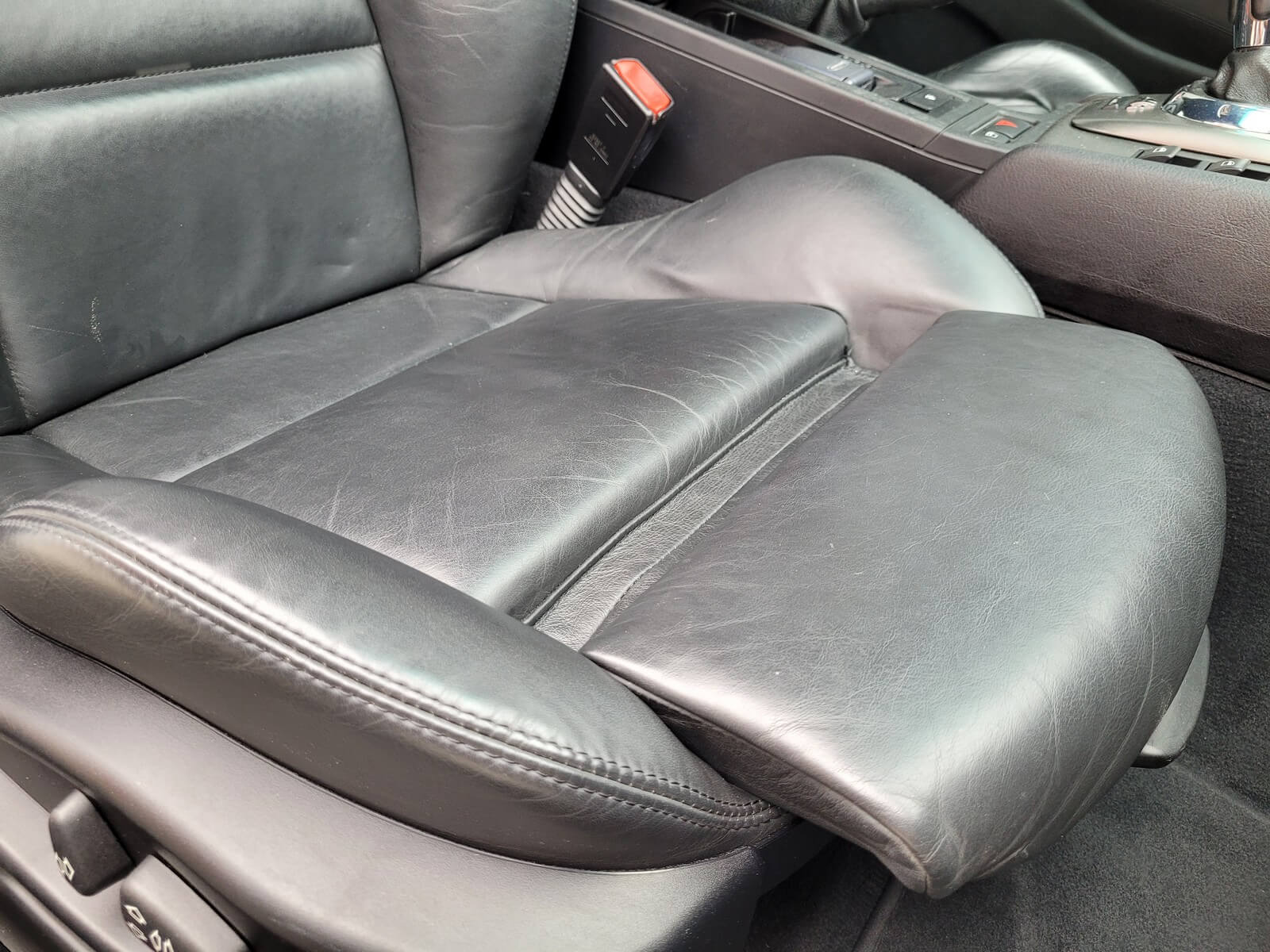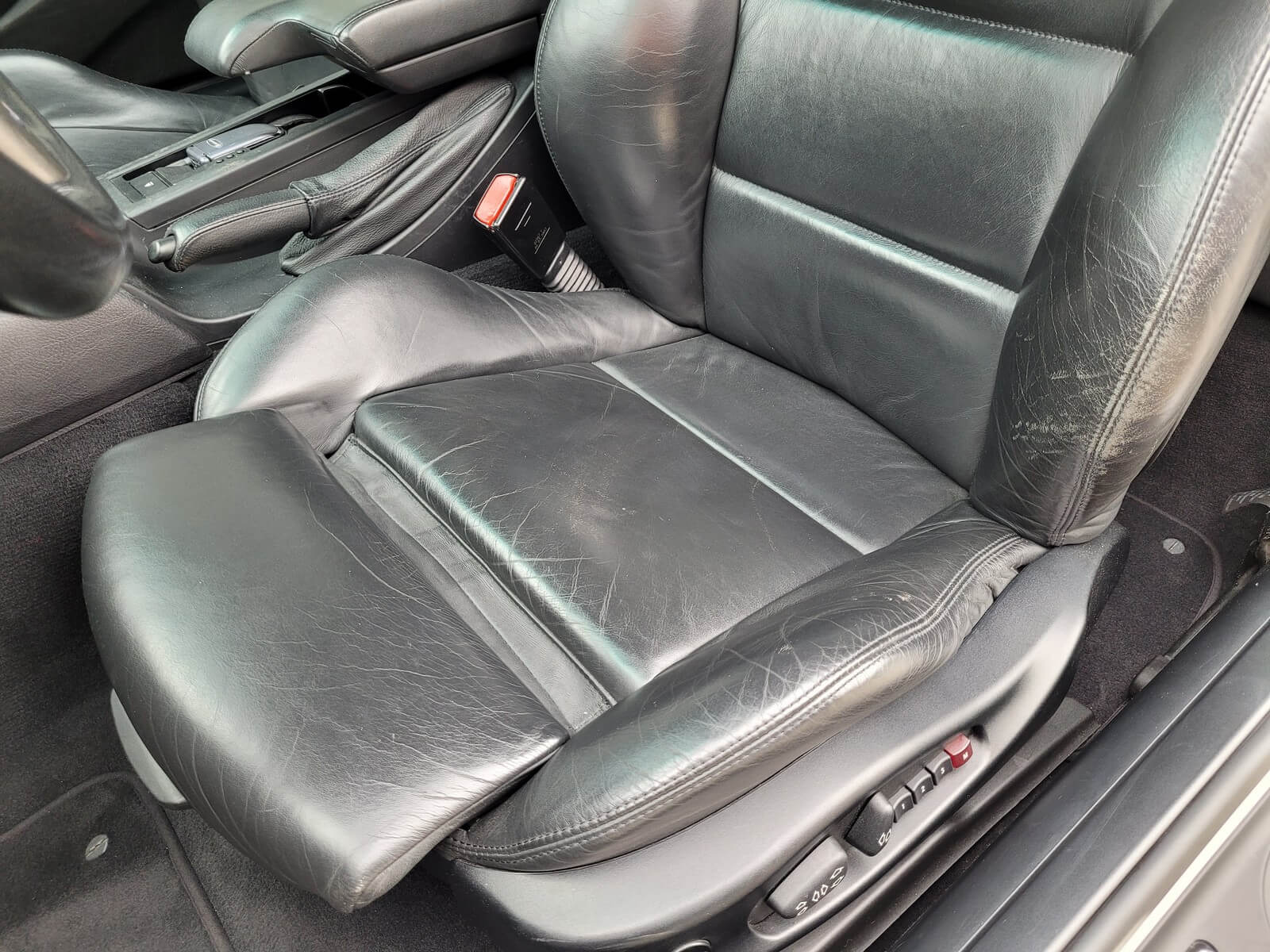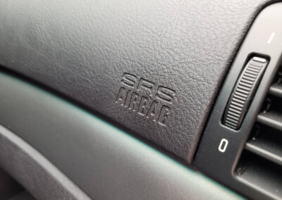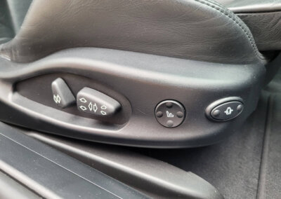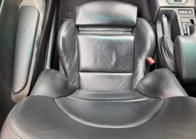 Wnętrze zachowane w bardzo dobrym stanie, widoczne jedynie drobne ślady użytkowania. Skórzana tapicerka bez przetarć czy uszkodzeń, minimalne ślady zużycia na boczku fotela kierowcy oraz w typowym miejscu – na boczkach drzwiowych. Żadne elementy nie były obszywane. Oryginalne radio, zmieniarka i GPS. Oryginalne dywaniki welurowe w bardzo dobrym stanie.