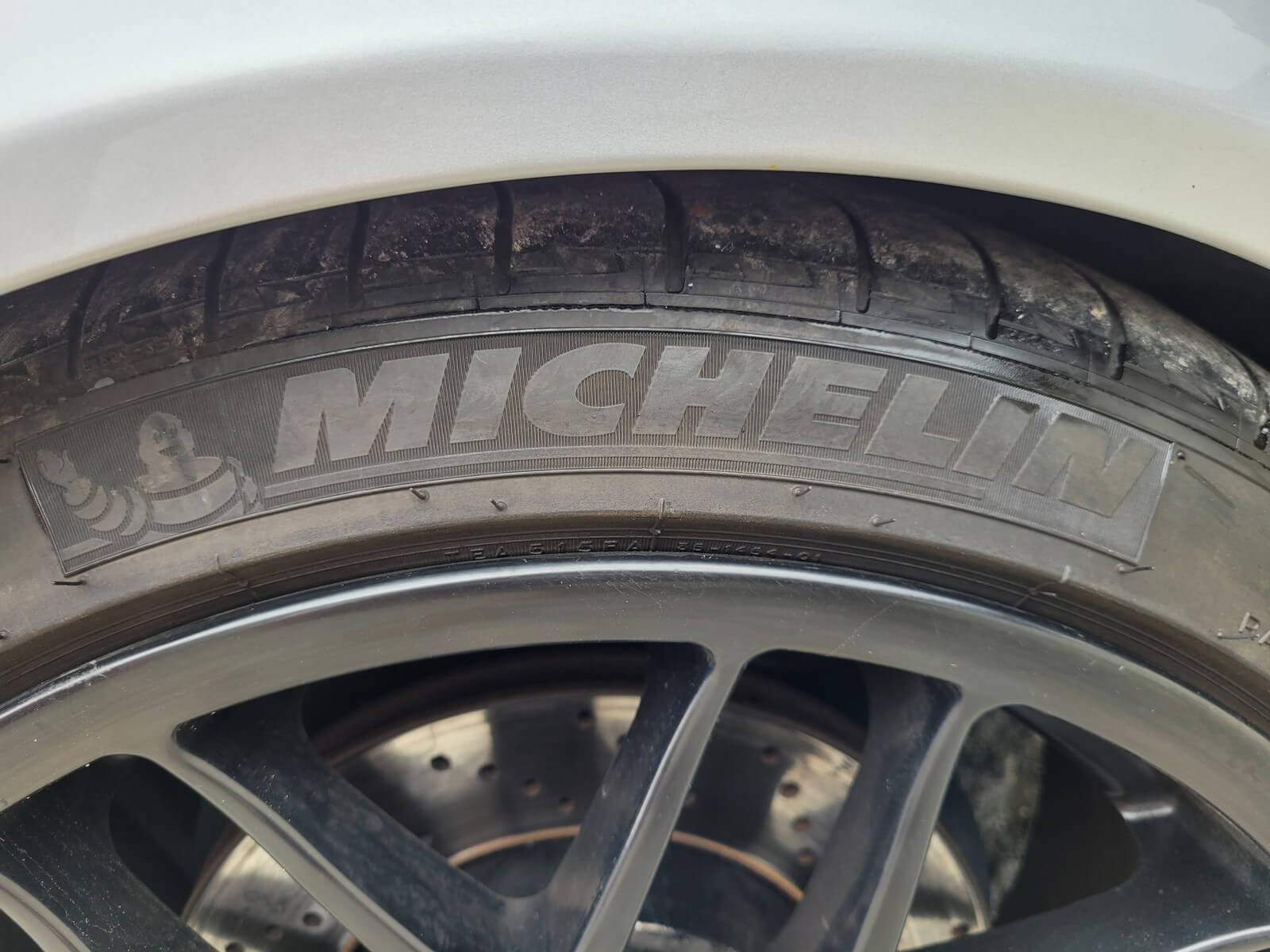 Felgi CSL w dobrym stanie. Opony letnie klasy premium Michelin przejechały zaledwie parę tysięcy kilometrów, jednak mają już swój wiek.