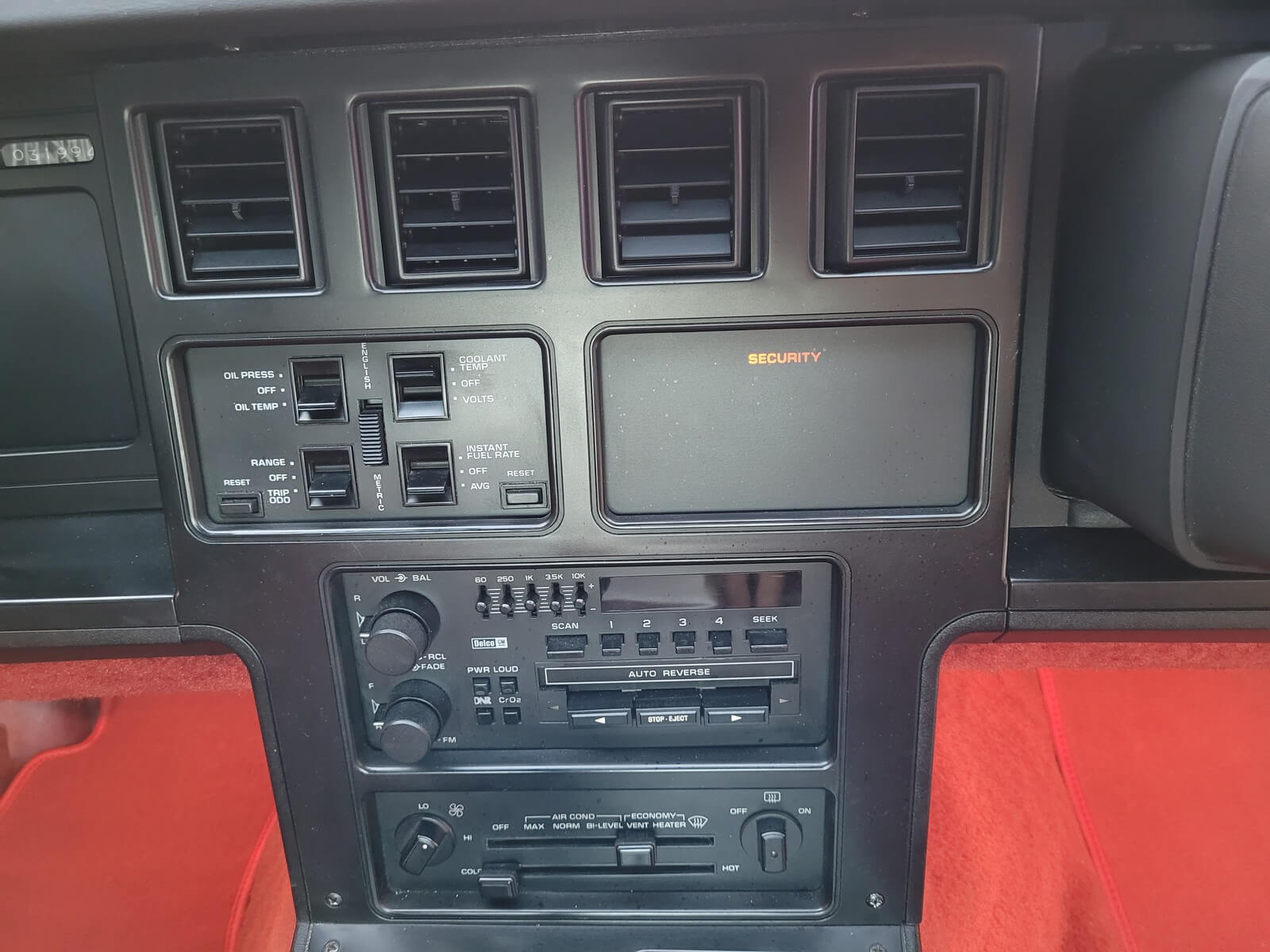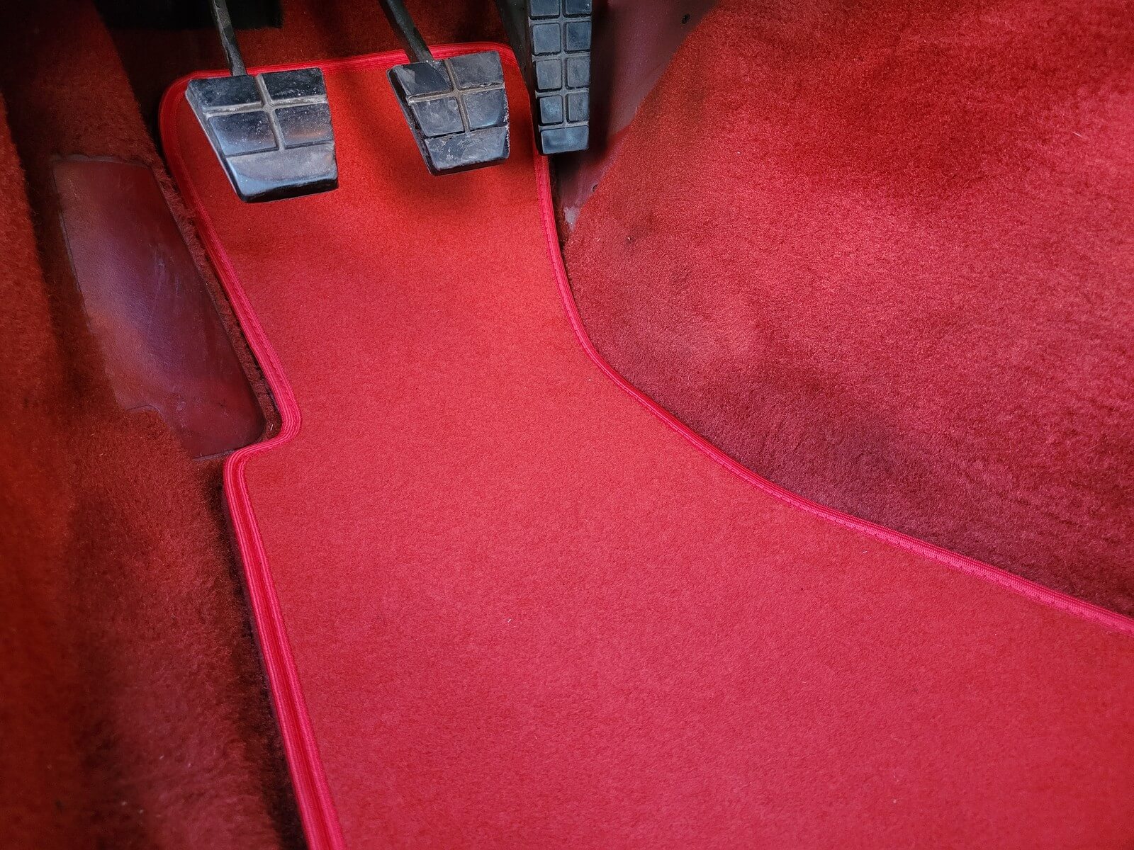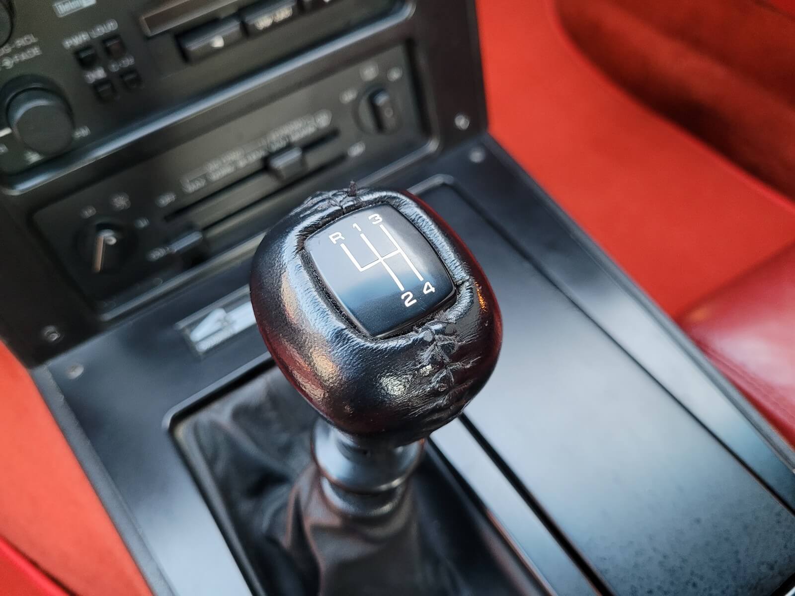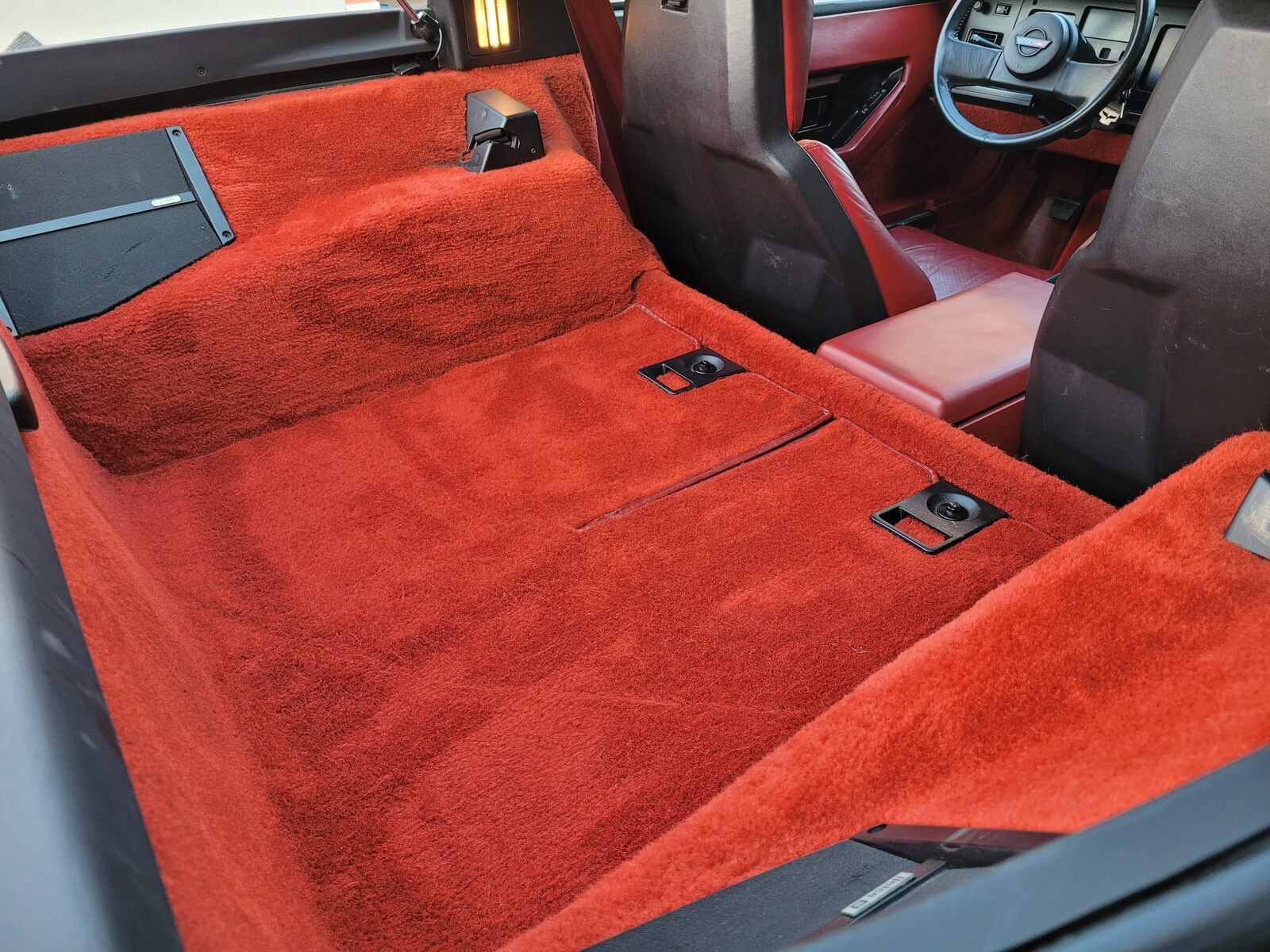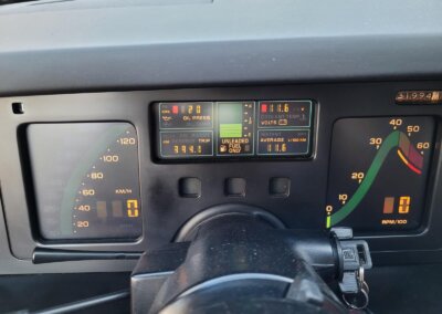 Wnętrze jest kompletne, bez żadnych widocznych uszkodzeń. Skórzana tapicerka zachowana w idealnym stanie, bez przetarć. Jest wciąż miękka, bez jakichkolwiek śladów zużycia. Wszystkie elementy wyposażenia zdają się być sprawne. Kierownica i wyberak biegów oryginalne w stanie dziewiczym. Komplet nowych dywaników welurowych, pod spodem oryginalne w idealnym stanie.