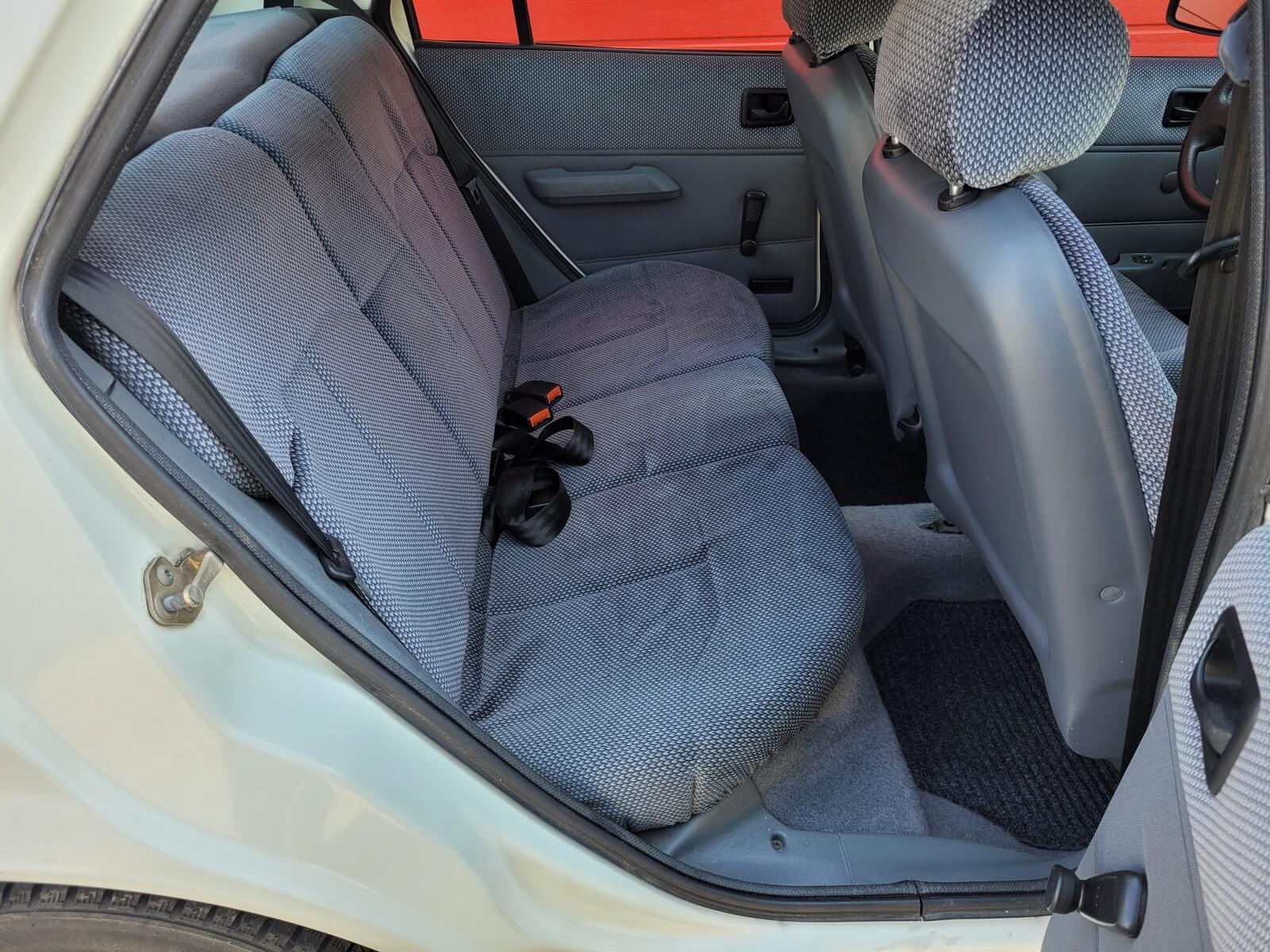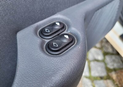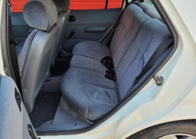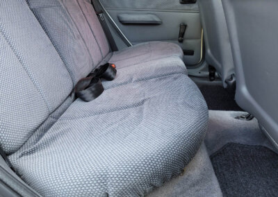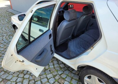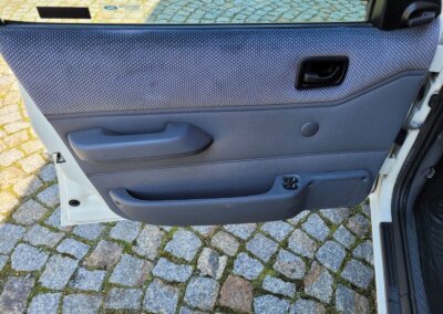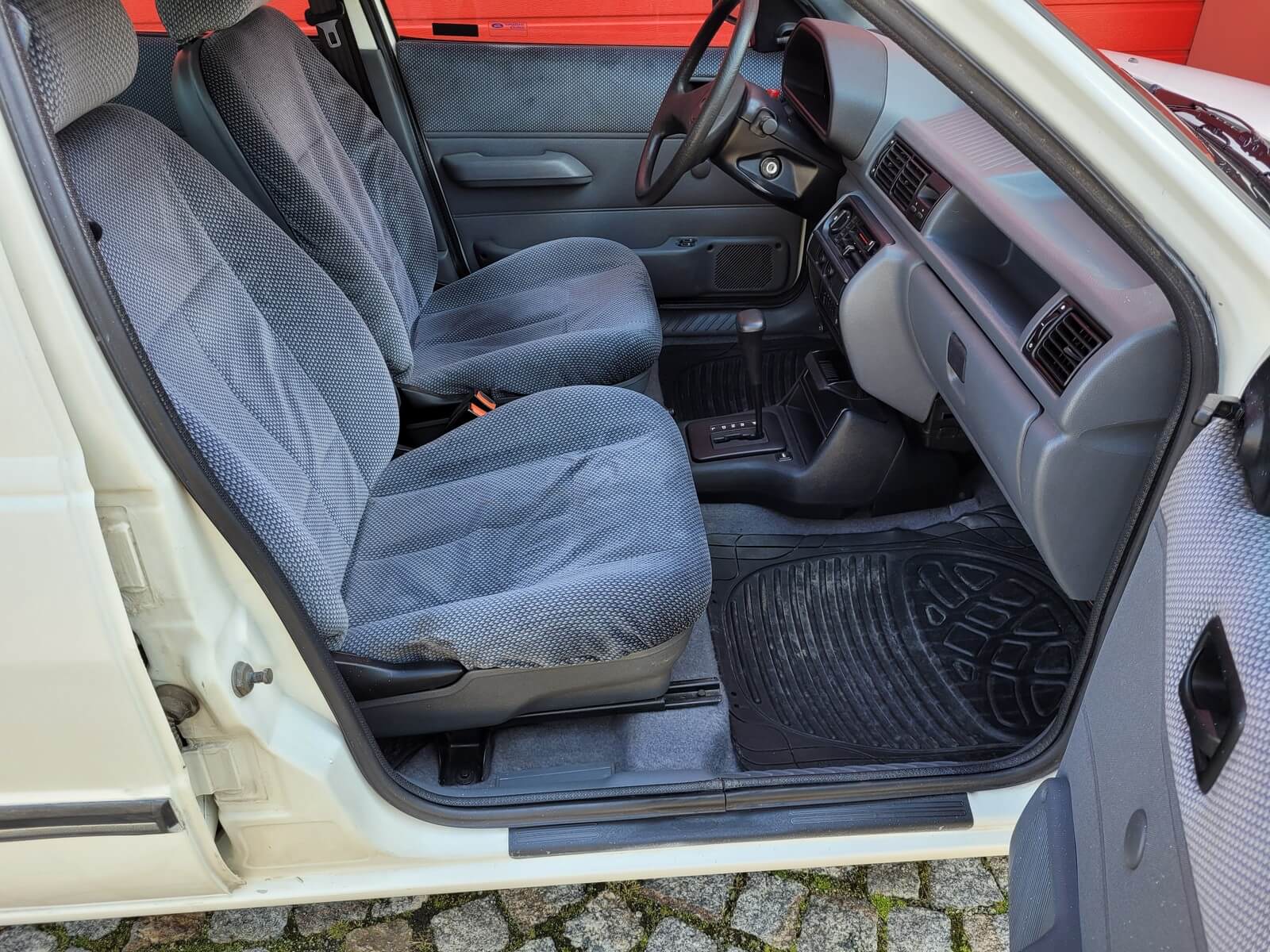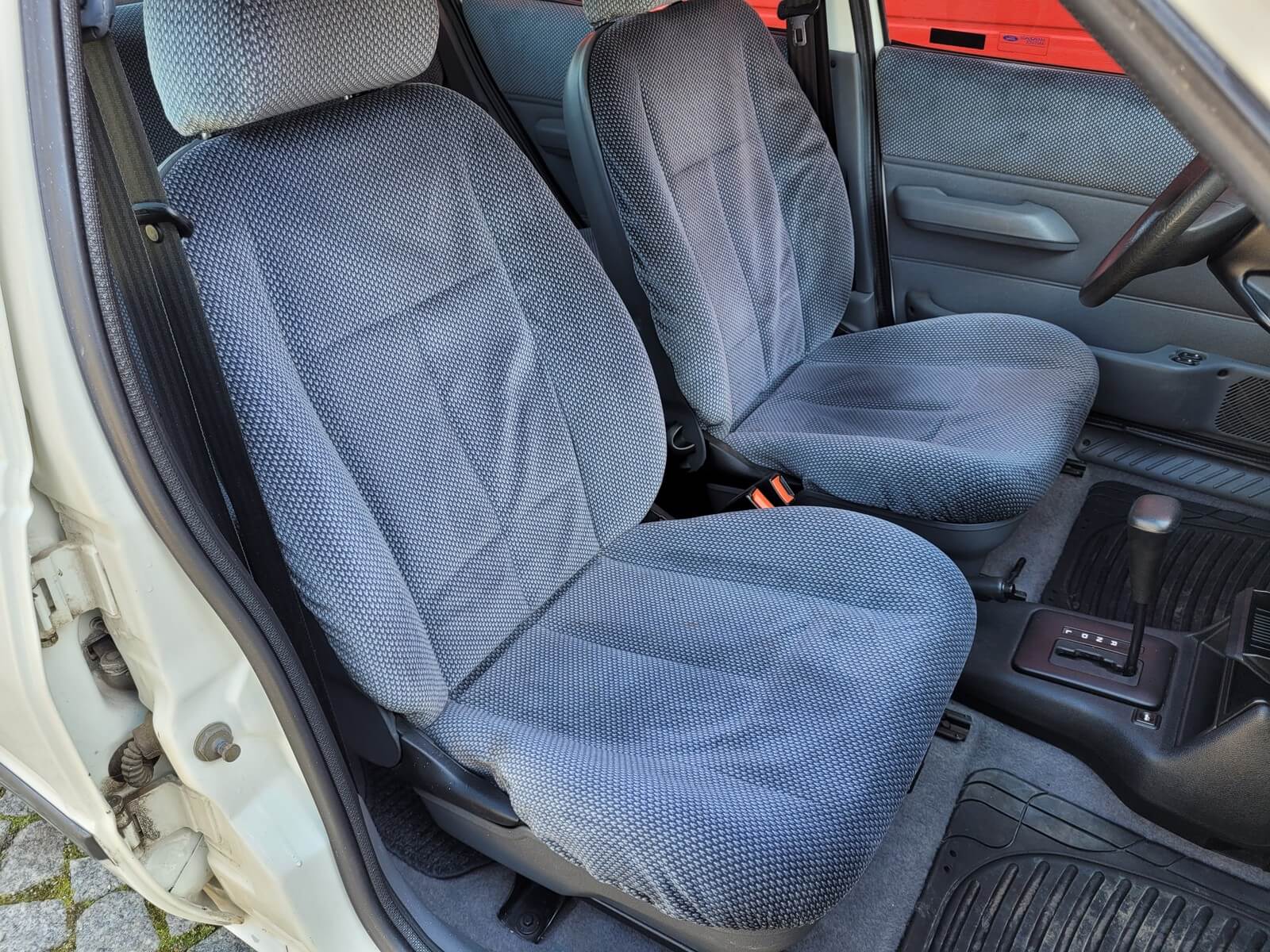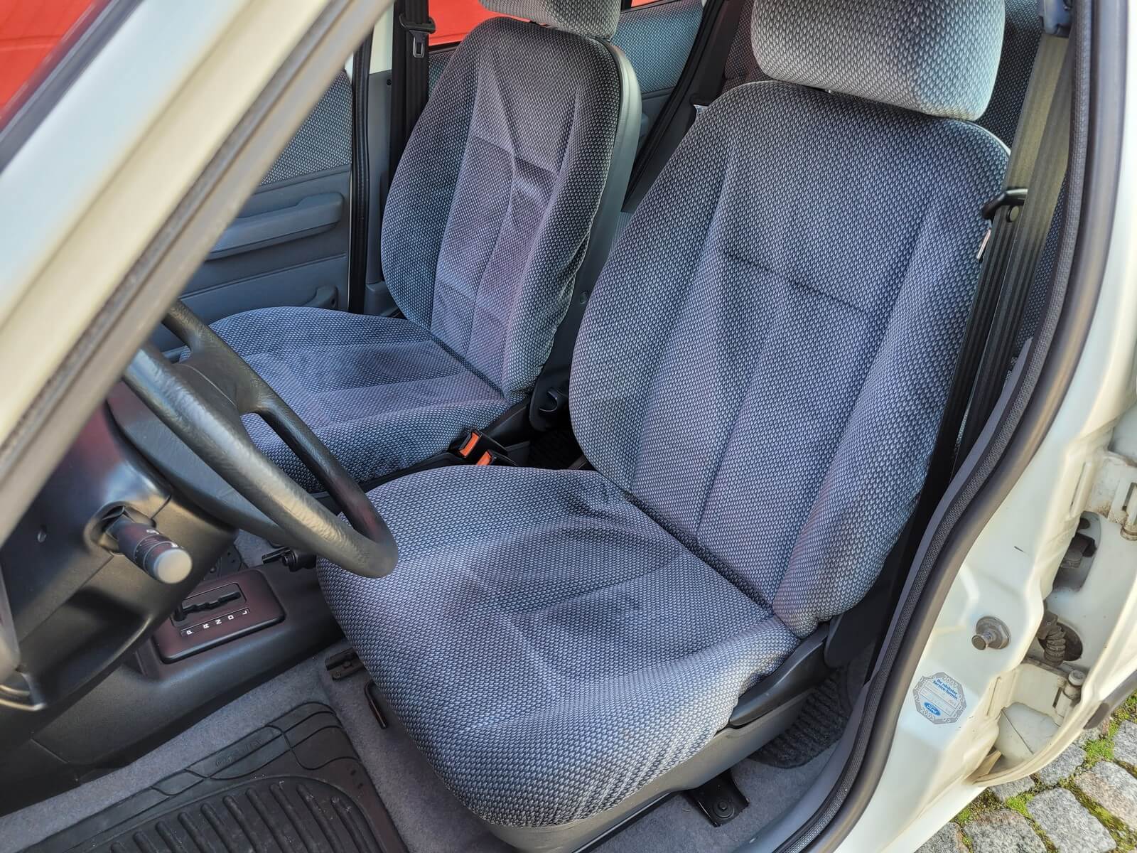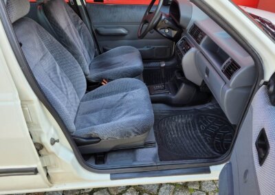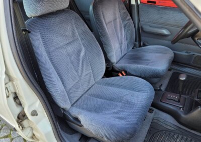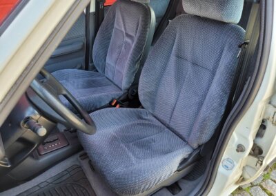 Wnętrze w dobrym stanie, jest kompletne. Welurowa tapicerka nie jest podarta ani uszkodzona. Fotele i plastiki są świeże i niezużyte.
