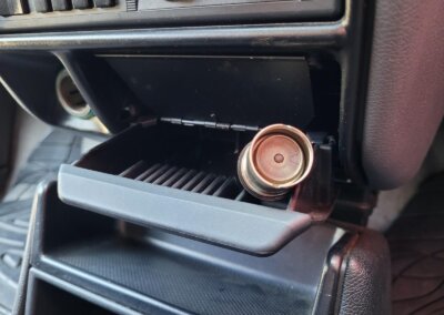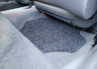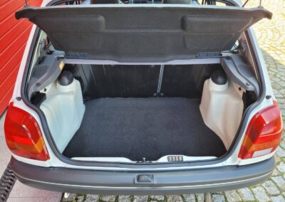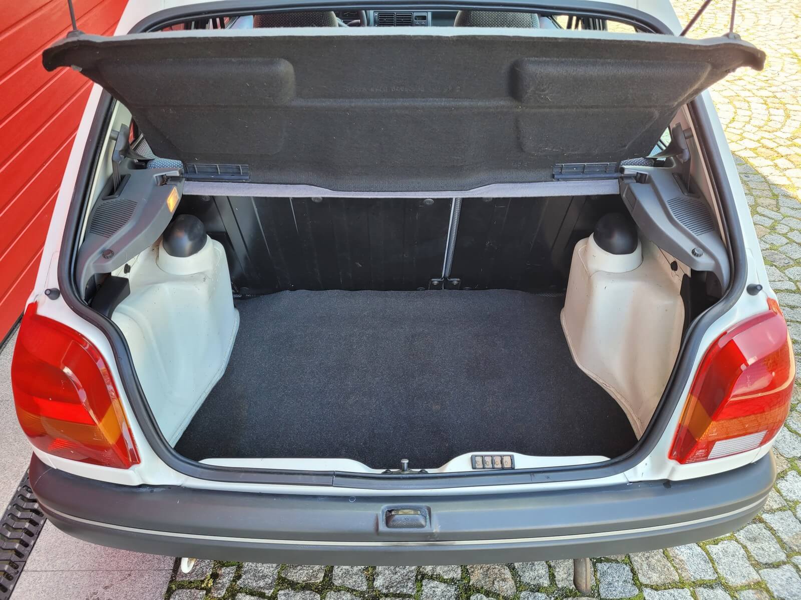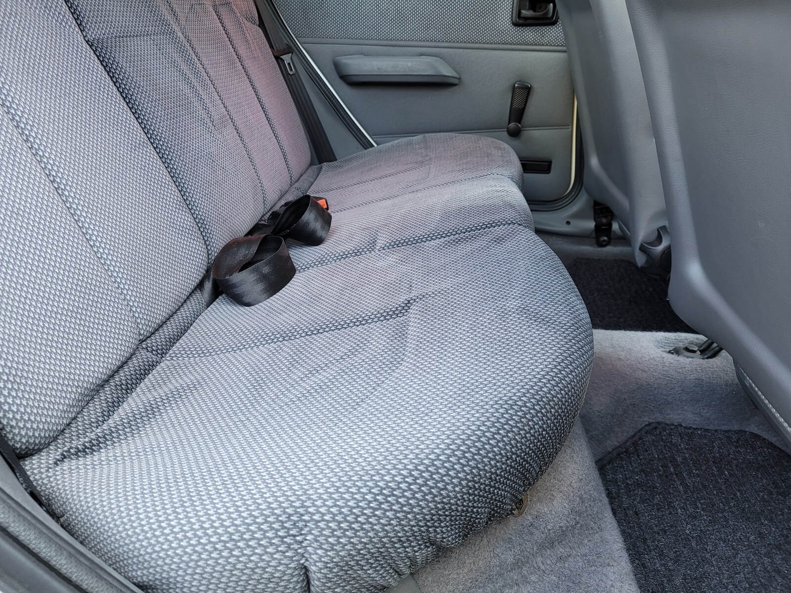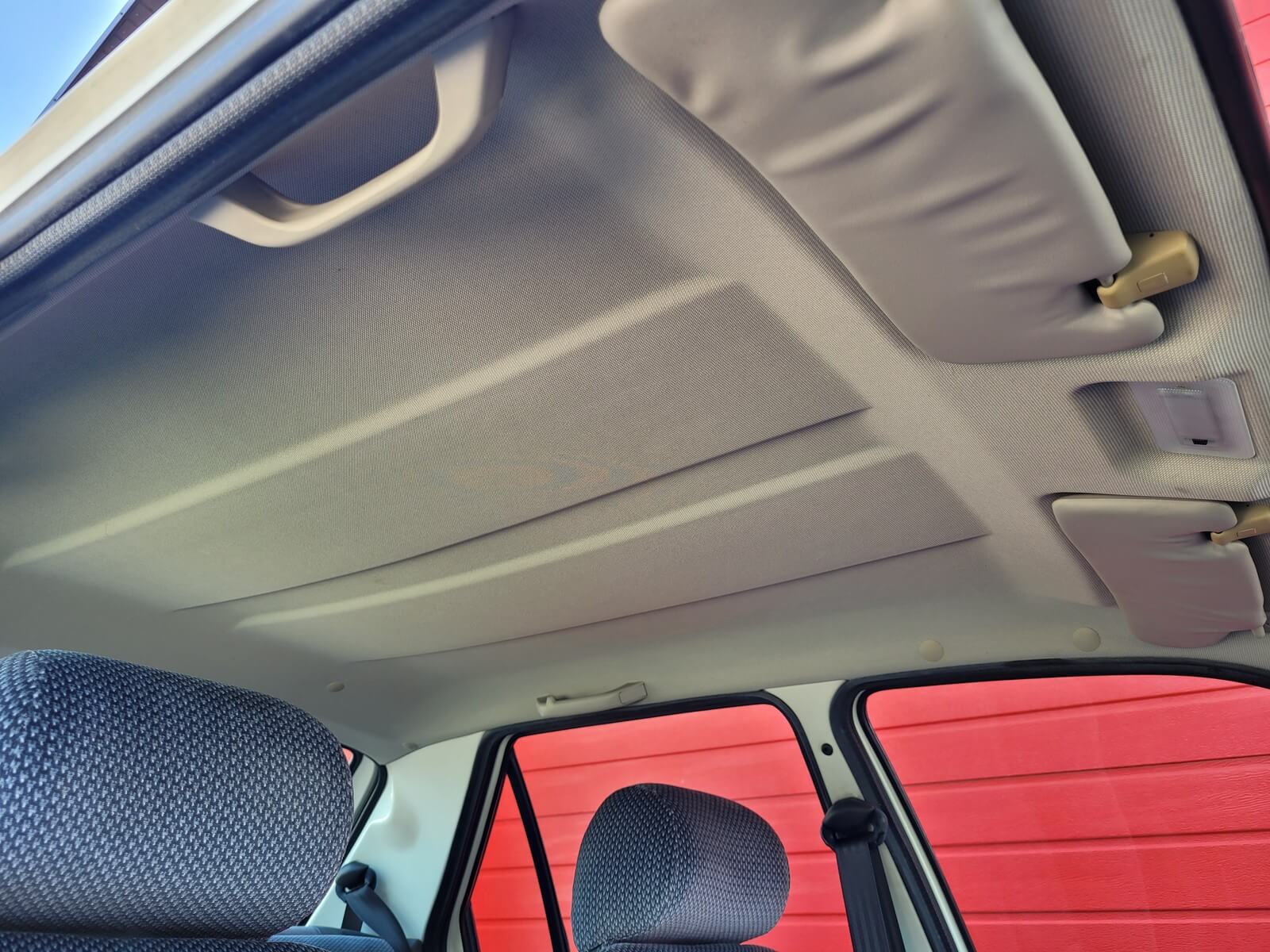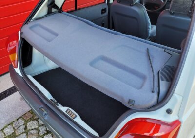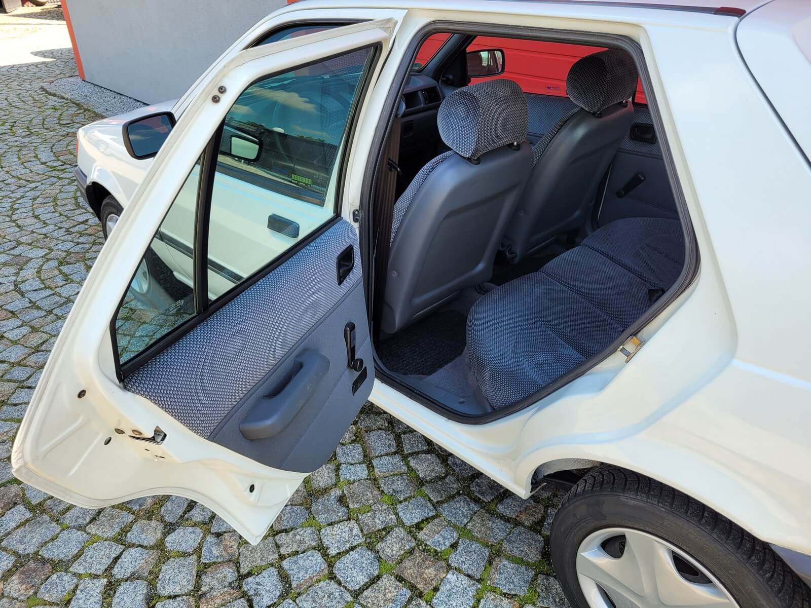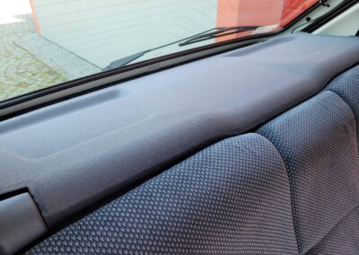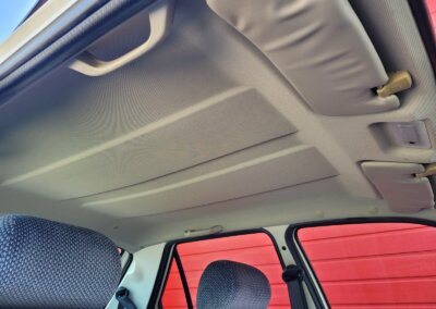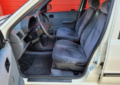 Wnętrze w dobrym stanie, jest kompletne. Welurowa tapicerka nie jest podarta ani uszkodzona. Fotele i plastiki są świeże i niezużyte.