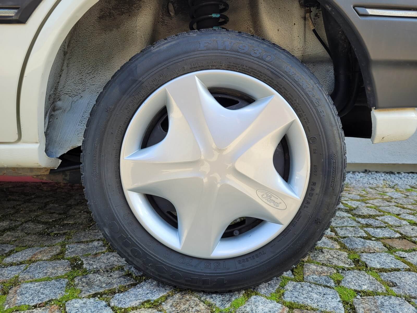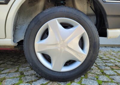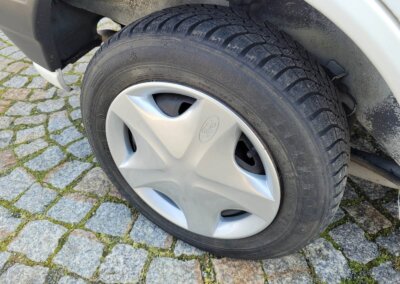 Samochód ma komplet oryginalnych felg z kołpakami. Opony nadają się do wymiany ze względu na wiek.