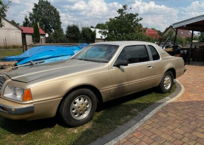 Oferuję na sprzedaż już zabytkowe auto jakim jest Ford Thunderbird 3.8 v6 z automatyczną skrzynią biegów z 1986r. Auto w stanie mechanicznym dobrym zarówno skrzynia jak i silnik pracują bez problemów. Auto na wyposażeniu posiada: Klimatyzację, elektryczne szyby, lusterka, elektrycznie sterowane fotele, wspomaganie, radio. Z ostatnich rzeczy które były wymienione w ostatnim czasie to kompletne hamulce z przodu. Do naprawy jest oświetlenie tablicy rozdzielczej, montaż podsufitki oraz wypranie tapicerki.