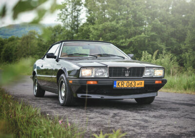 Prezentowane Maserati pochodzi z 1987 roku, i jest już egzemplarzem poprawionym zarówno pod względem zabezpieczeń antykorozyjnych, jak i rozwiązań mechanicznych.