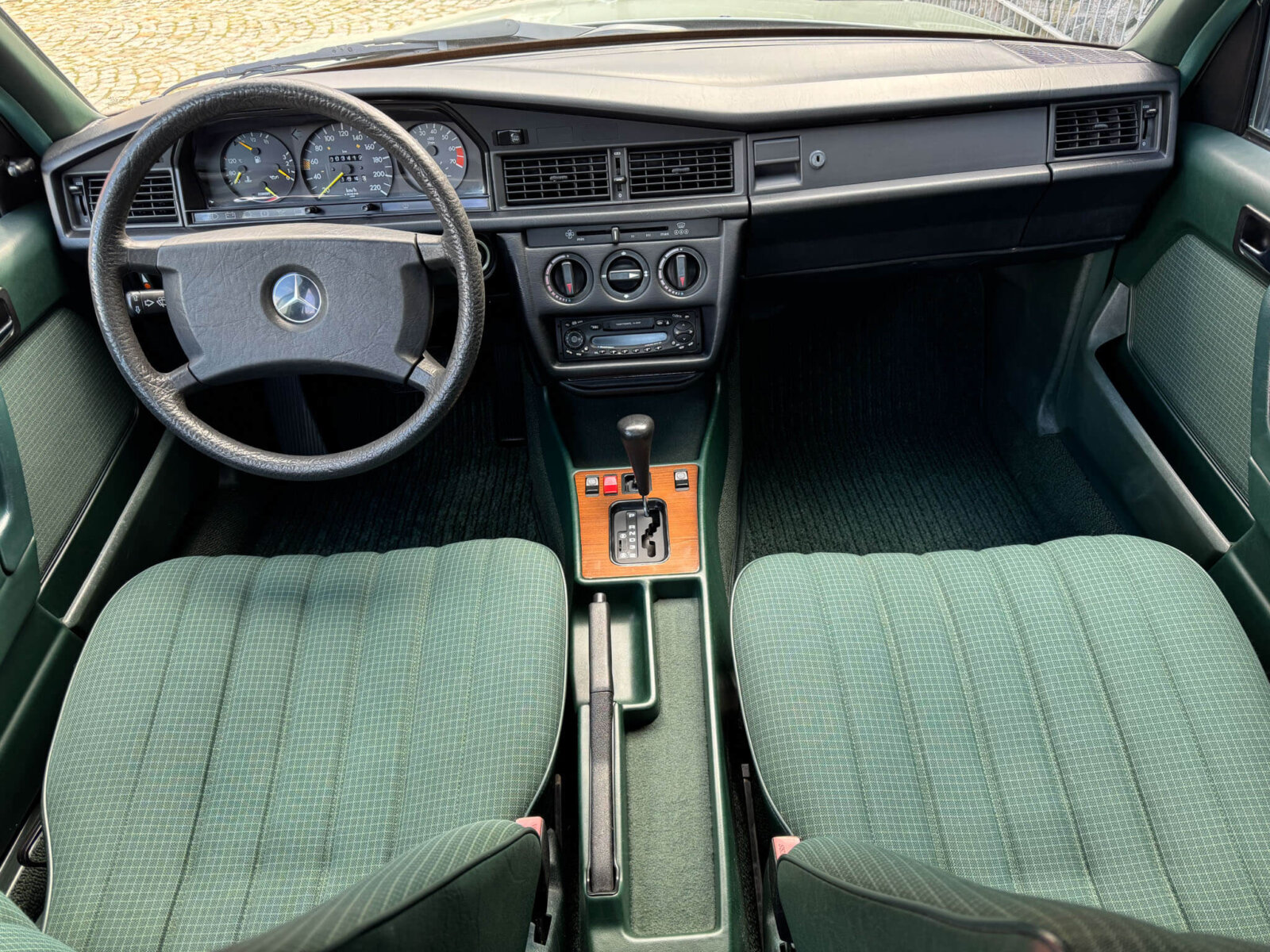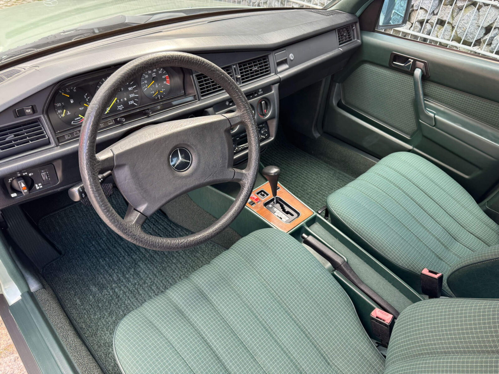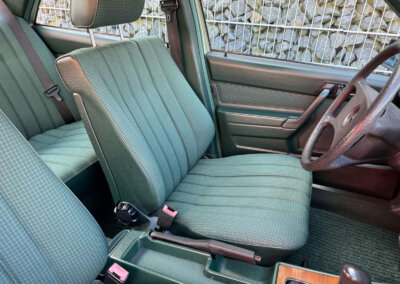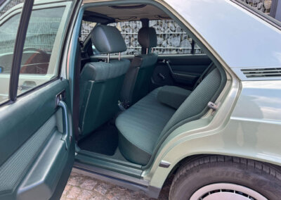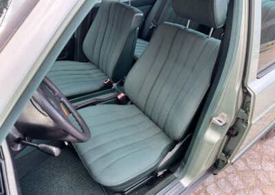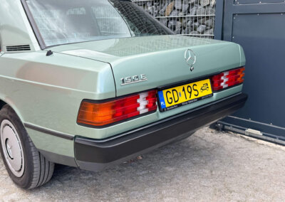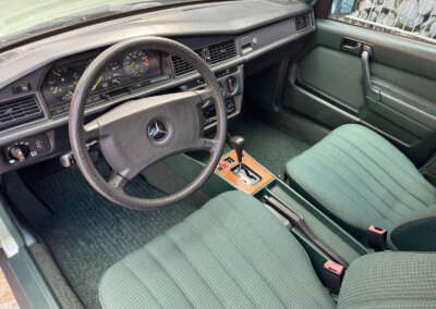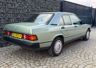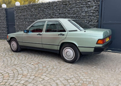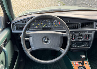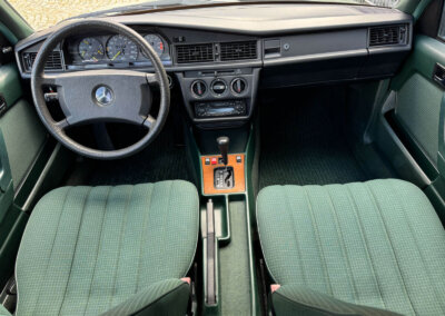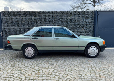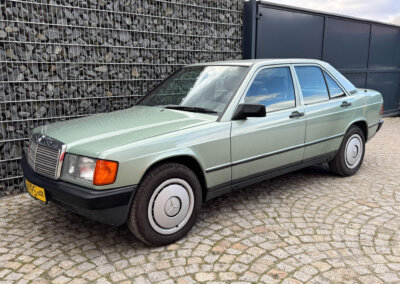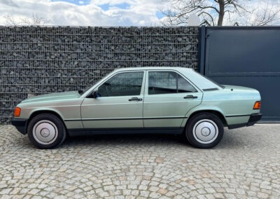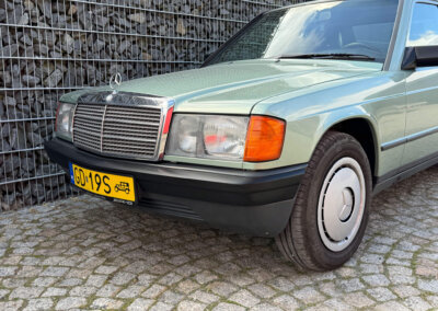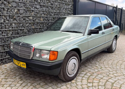 Przedmiotem sprzedaży jest Mercedes 190E 2.0 tzw. “wąska listwa” w kolorze „261 Nelkengrün Metallic” z zieloną tapicerką „Piniengrün”. Samochód ma 37 lat, jest zachowany w idealnym stanie z drobnymi śladami użytkowania oraz upływu czasu. Sprowadzony z Bern, Szwajcaria od spadkobiercy pierwszego właściciela. Jest dokumentacja serwisowa, książka serwisowa, książka badań spalin „Abgas”, rachunki, instrukcje, dwa kluczyki.
