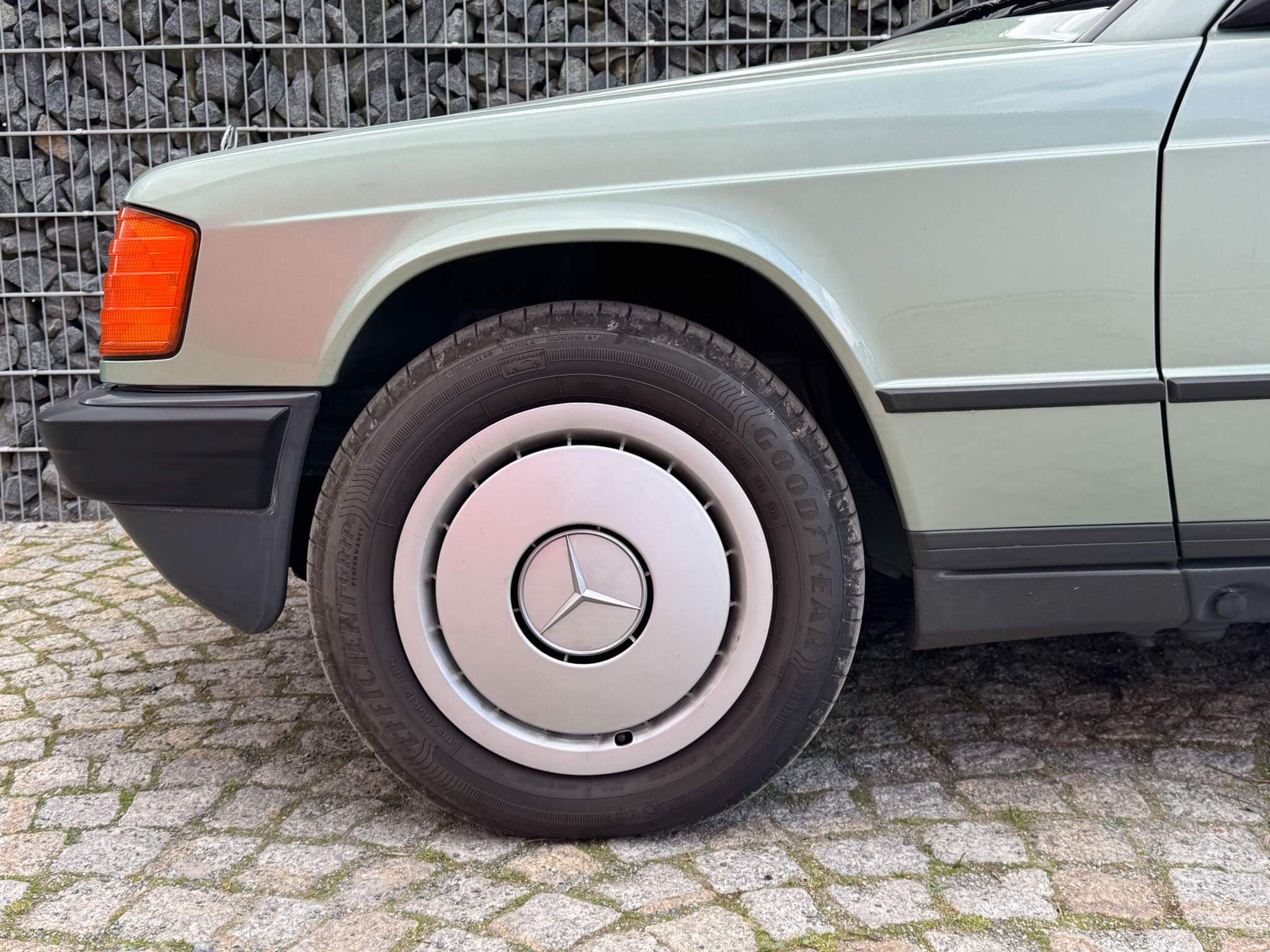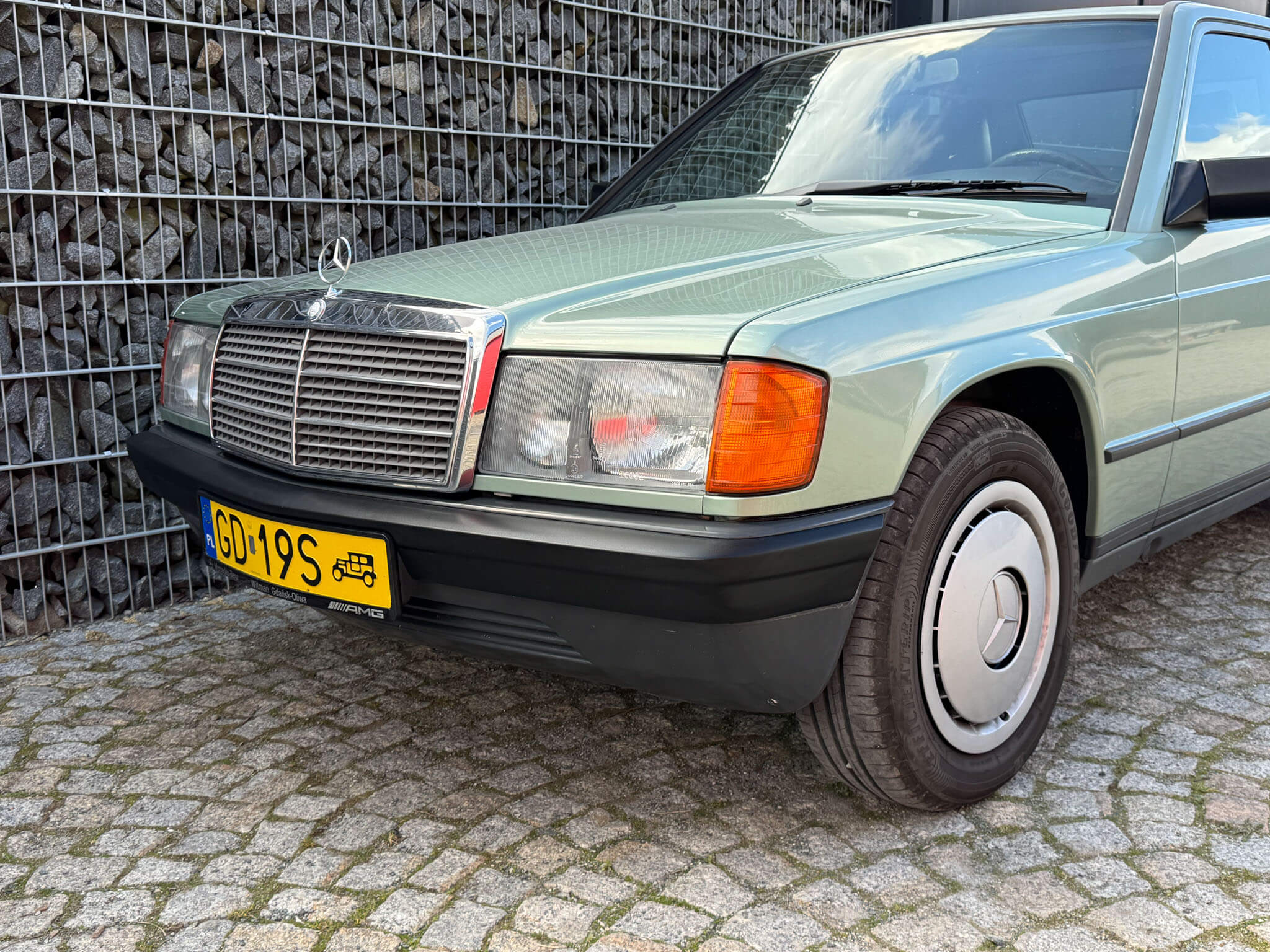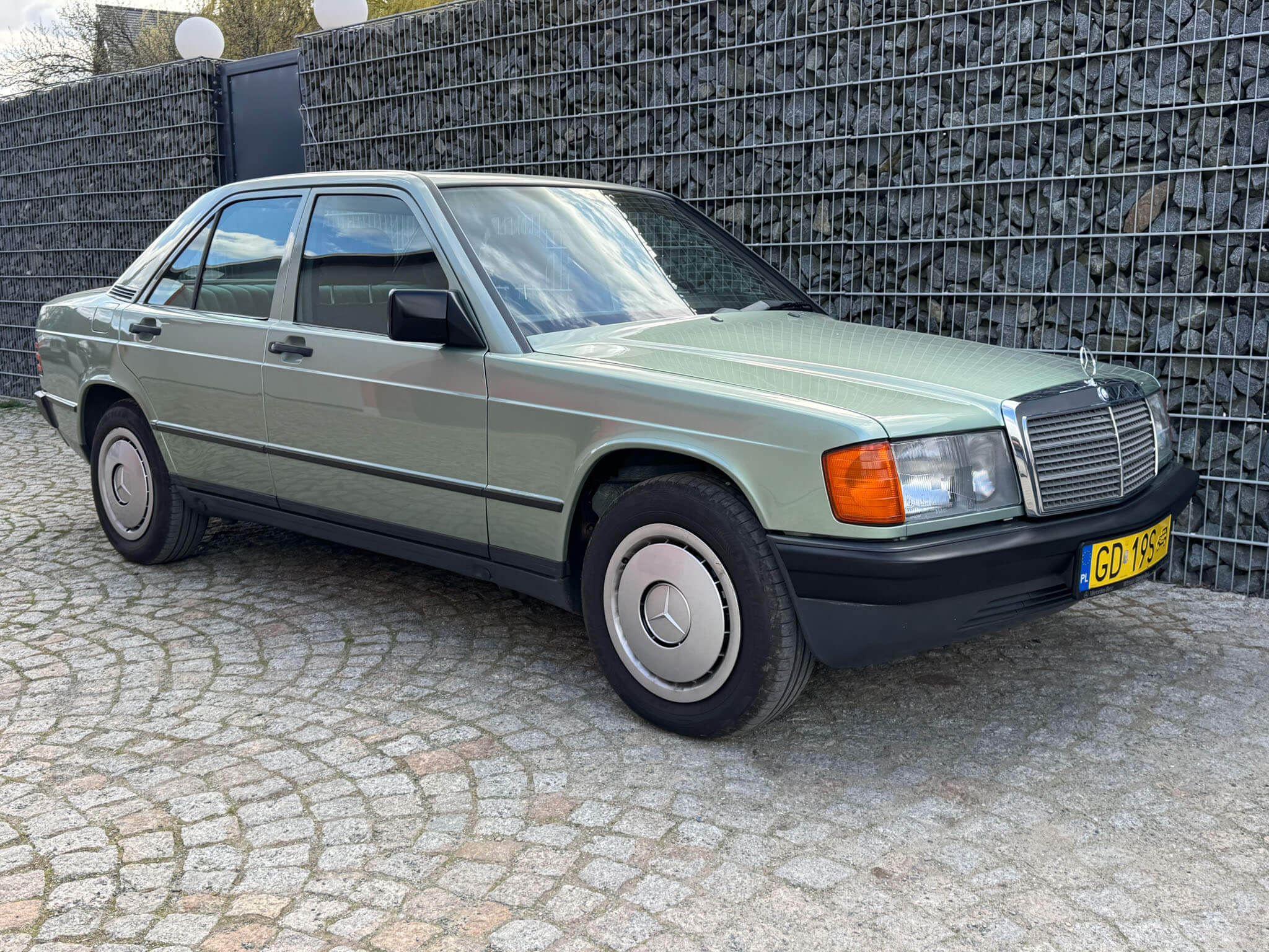 Przedmiotem sprzedaży jest Mercedes 190E 2.0 tzw. “wąska listwa” w kolorze „261 Nelkengrün Metallic” z zieloną tapicerką „Piniengrün”. Samochód ma 37 lat, jest zachowany w idealnym stanie z drobnymi śladami użytkowania oraz upływu czasu. Sprowadzony z Bern, Szwajcaria od spadkobiercy pierwszego właściciela. Jest dokumentacja serwisowa, książka serwisowa, książka badań spalin „Abgas”, rachunki, instrukcje, dwa kluczyki.