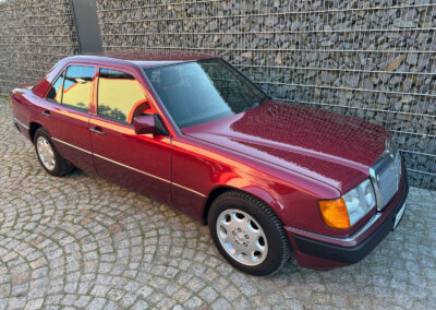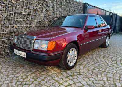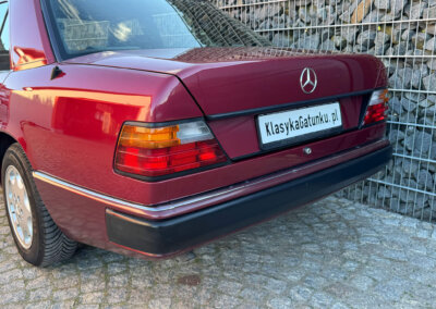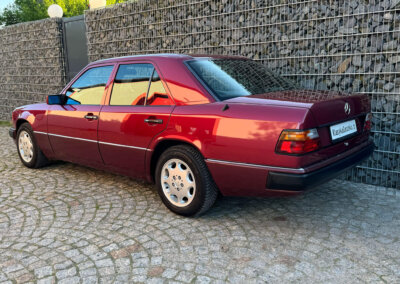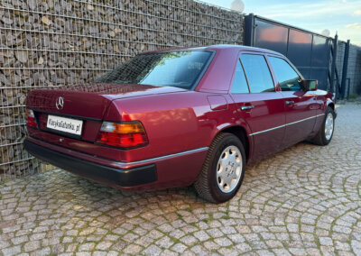 Przedmiotem sprzedaży jest Mercedes-Benz 230E w kolorze „512 Almandinrot Metallic” z czarną tapicerką Karo Sportline. Sprowadzony z Niemiec od pierwszego właściciela. Od 8 lat znajduje się w kolekcji samochodów zabytkowych. Samochód ma 33 lata, mimo to jest zachowany w bardzo dobrym stanie z minimalnymi śladami użytkowania. Posiada oryginalny przebieg 102 tysiące kilometrów. Samochód był garażowany, dzięki temu dotrwał do dnia dzisiejszego w nadzwyczajnym, oryginalnym stanie.