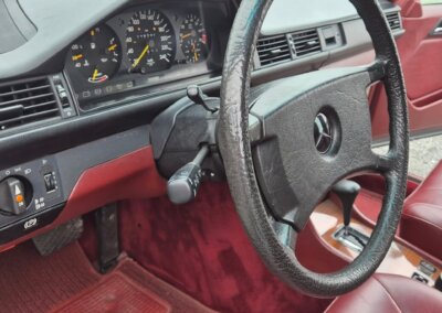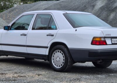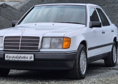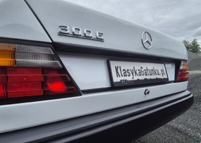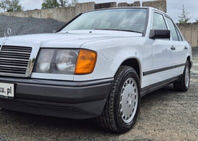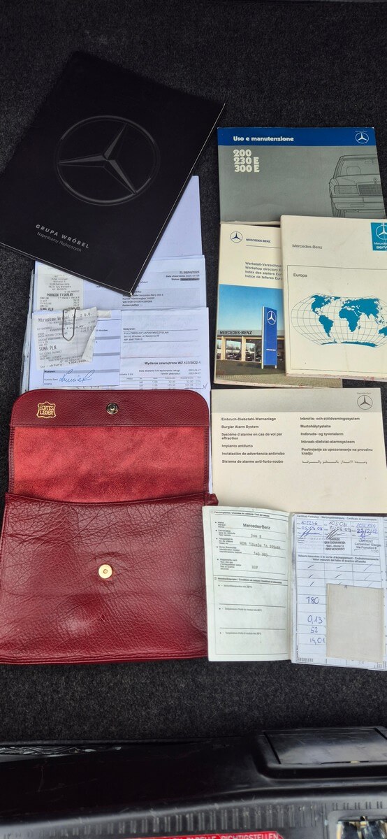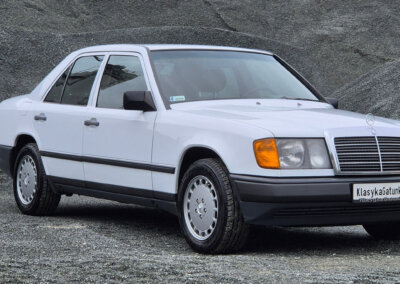 Przedmiotem sprzedaży jest Mercedes 300E serii W124 w kolorze “147 Arktikweiss” z czerwoną skórzaną tapicerką. Sprowadzony z Mendrisio, Szwajcaria bezpośrednio od pierwszego właściciela (ur. 1936). Samochód służył przez 35 lat w domu wakacyjnym nad jeziorem Lugano. Następnie spędził kilka lat w prywatnej kolekcji Mercedesów. Zachowany w doskonałym stanie z minimalnymi śladami użytkowania. Posiada dokumentację serwisową w oryginalnym etui z czerwonej skóry oraz 4 kluczyki. Unikatowe zestawienie kolorystyczne.