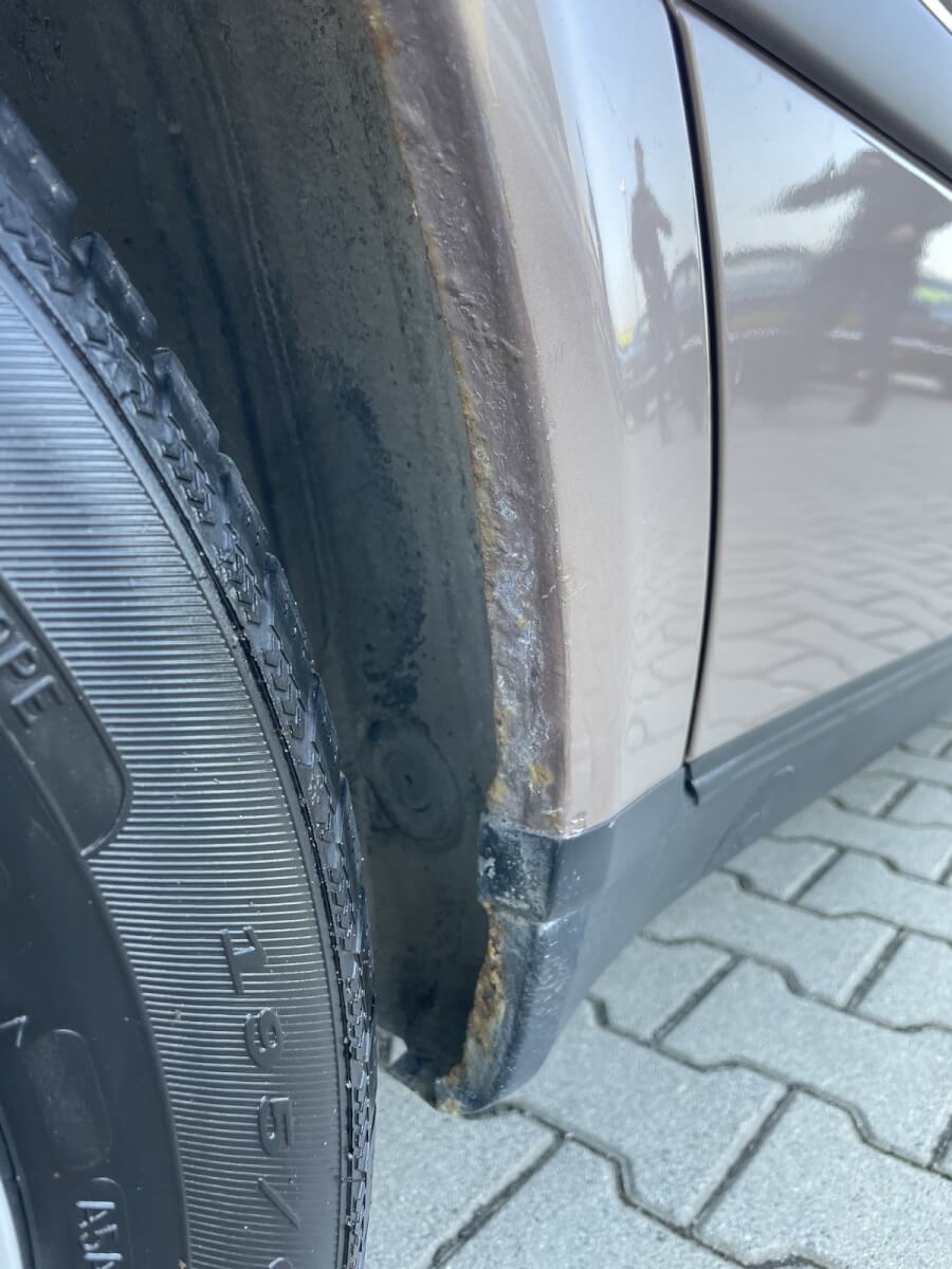 - Widoczna korozja na rancie prawego tylnego nadkola — do ewentualnej kosmetyki