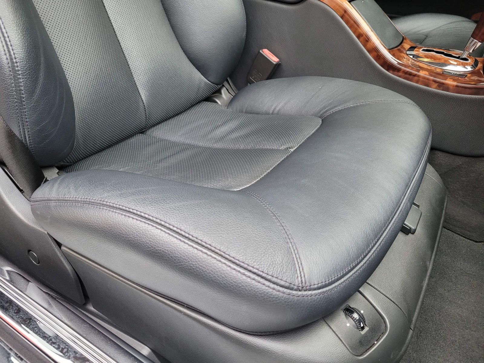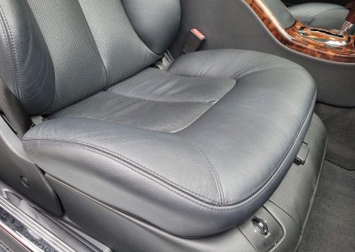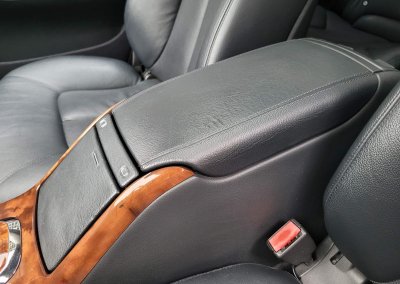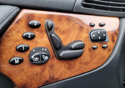 Wnętrze zachowane w idealnym stanie, widoczne jedynie minimalne ślady użytkowania. Skórzana tapicerka jest wciąż jak nowa, bez przetarć czy uszkodzeń. Żadne elementy nie były obszywane. Dywaniki jak nowe. Elementy drewniane w idealnym stanie, mają bardzo żywy kolor i są wolne od pęknięć. Plastiki matowe bez rys czy pęknięć. Skórzana kierownica i wybierak idealnie utrzymane, nie obszywane ani nie regenerowane. Brak uszkodzeń od słońca czy wilgoci.
