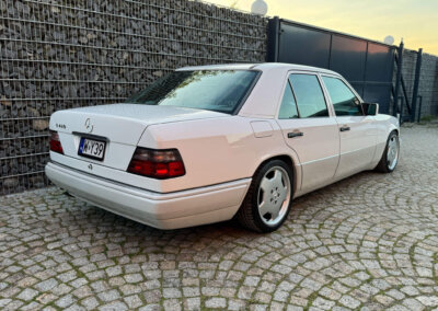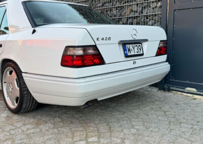 Przedmiotem sprzedaży jest Mercedes E420 w kolorze „149 Polar White” z szarą skórzaną tapicerką. Sprowadzony z Californii, USA od doktora, członka klubu Mercedes-Benz. Nie był rozbity, uszkodzony ani zalany. Ma czystą historię. Od 8 lat znajduje się w kolekcji samochodów zabytkowych. Samochód ma 32 lata, mimo to jest zachowany w bardzo dobrym stanie z minimalnymi śladami użytkowania. Posiada oryginalny przebieg. Samochód był garażowany, dzięki temu dotrwał do dnia dzisiejszego w nadzwyczajnym, oryginalnym stanie.