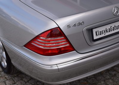 Przedmiotem sprzedaży jest Mercedes S430 4Matic w kolorze „744 Brillantsilber Metallic” z czarną skórzaną tapicerką. Sprowadzony z Sapporo, Japonia, bezpośrednio od pierwszego właściciela. Zachowany w perfekcyjnym stanie z niskim, oryginalnym przebiegiem 34 tysiące kilometrów. Mercedes był garażowany i serwisowany zgodnie z zaleceniem producenta. Posiada kompletną dokumentację serwisową w oryginalnym etui.