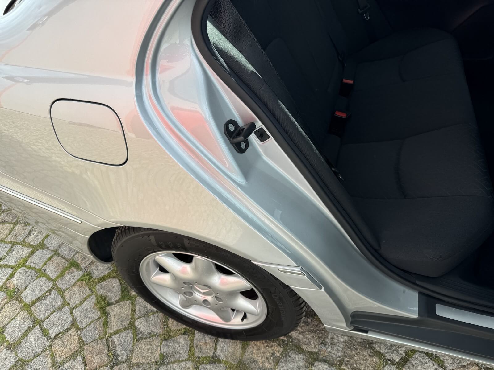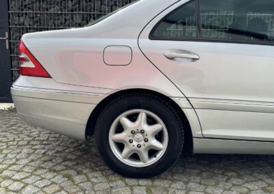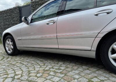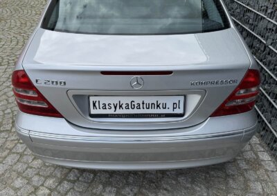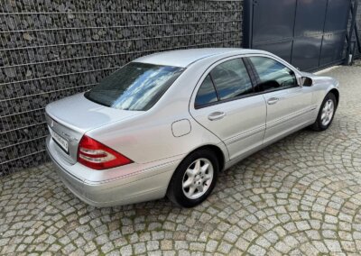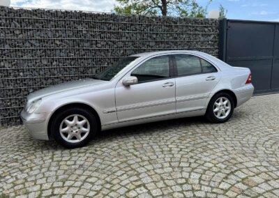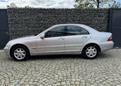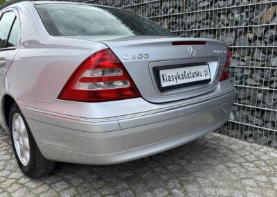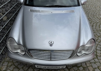 Przedmiotem sprzedaży jest Mercedes C 200 Kompressor w kolorze „744 Brillantsilber Metallic” z czarną tapicerką materiałową. Sprowadzony z Sycylii, Włochy od pierwszego właściciela. Następnie w rękach pasjonata marki. Samochód ma 25 lat, mimo to jest zachowany w idealnym stanie z minimalnymi śladami użytkowania. Wygląda jak trzyletni samochód. Posiada oryginalny przebieg 37 tysięcy kilometrów. Samochód był zawsze garażowany i użytkowany sezonowo, dzięki temu dotrwał do dnia dzisiejszego w nadzwyczajnym, oryginalnym stanie.