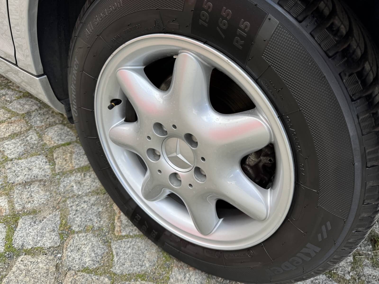 Komplet oryginalnych alufelg w idealnym stanie. Nowe opony wielosezonowe Kleber.