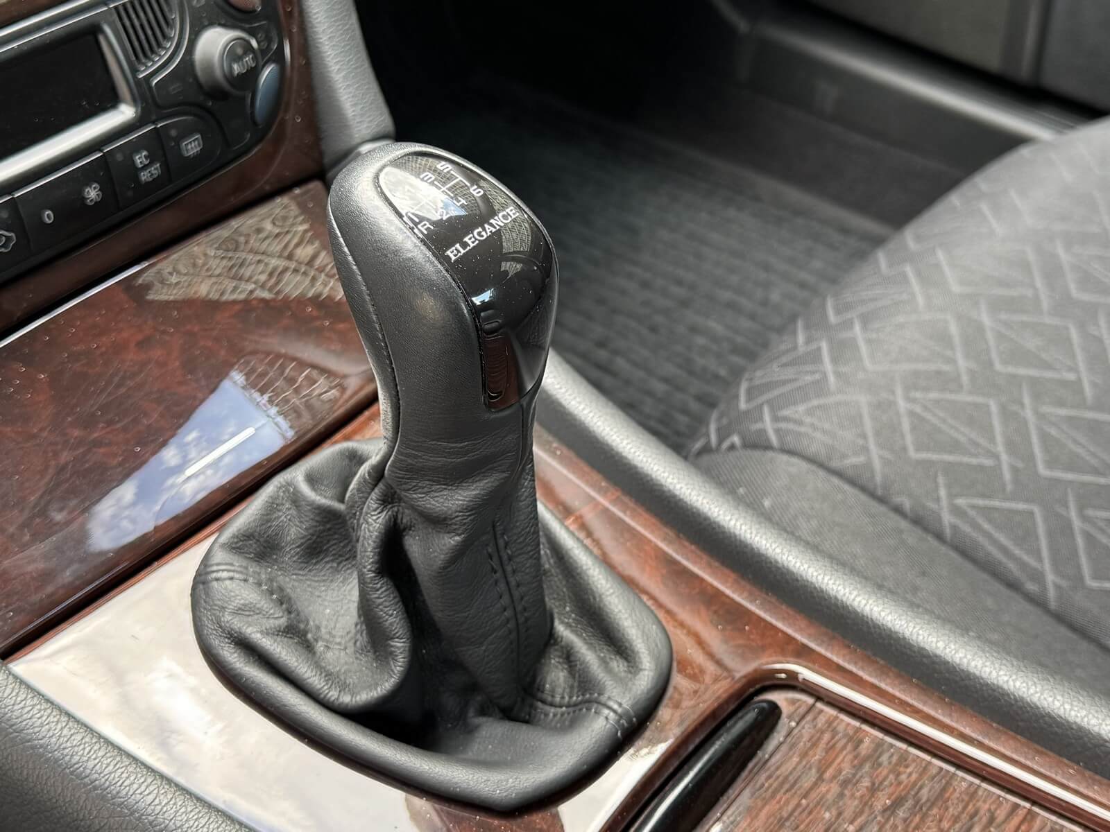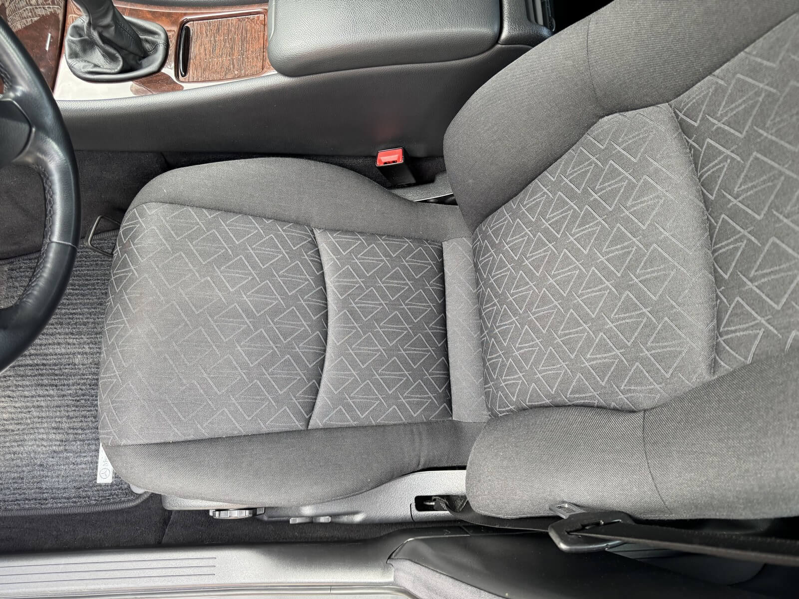Wnętrze zachowane w idealnym stanie, widoczne jedynie minimalne ślady użytkowania. Materiałowa tapicerka jest wciąż świeża, jak nowa, bez przetarć czy uszkodzeń. Żadne elementy nie były obszywane. Oryginalne radio MB. Oryginalne dywaniki rypsowe w bardzo dobrym stanie. Elementy drewniane w idealnym stanie, mają bardzo żywy kolor i są wolne od pęknięć. Plastiki matowe bez rys czy pęknięć. Skórzana kierownica i wybierak idealnie utrzymane, nie obszywane ani nie regenerowane. Brak uszkodzeń od słońca czy wilgoci. Materiał na podsufitce odkleja się.