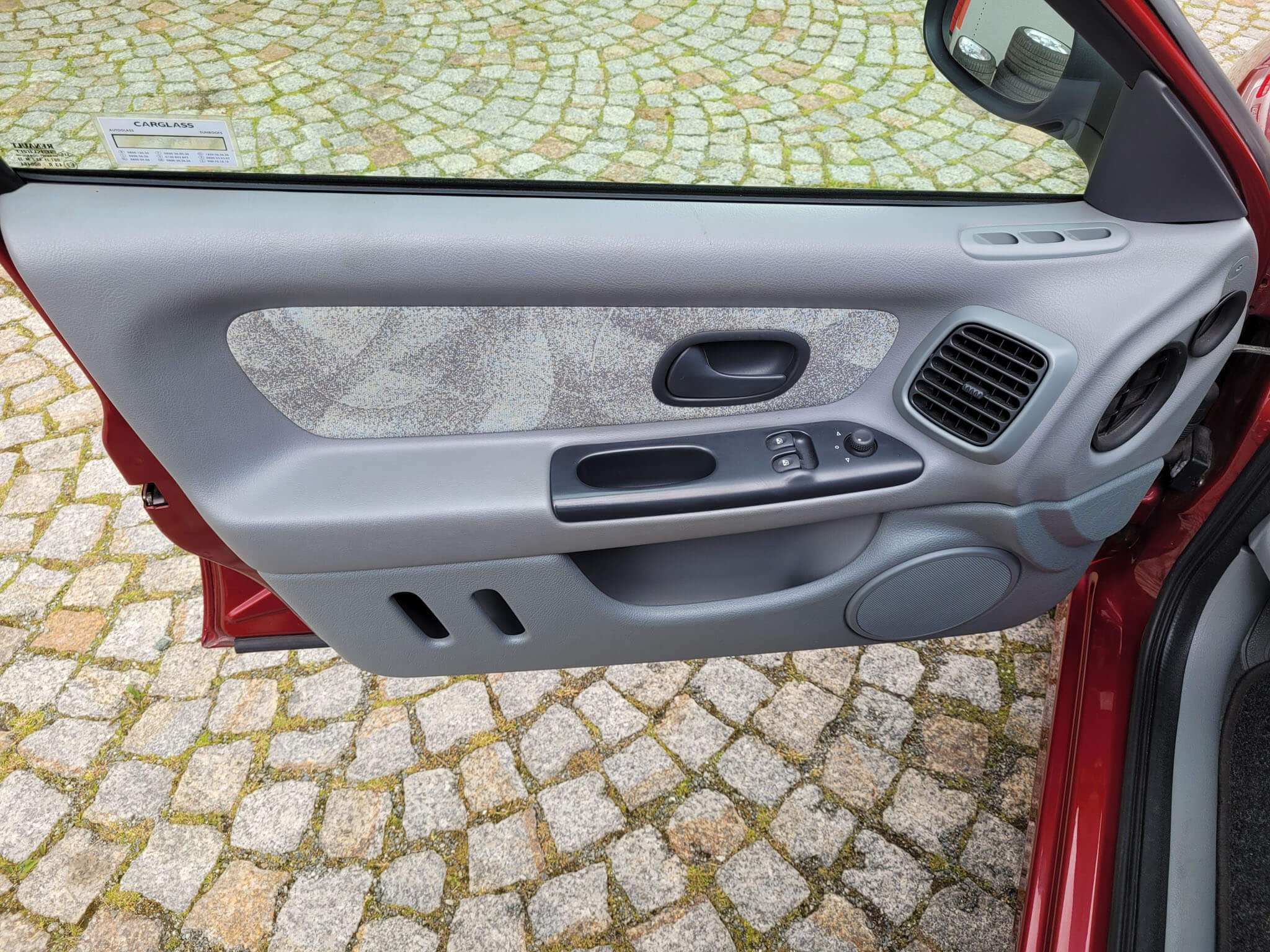 Komplet oryginalnych kołpaków z niewielkimi przetarciami. Na felgach cały czas założone są fabryczne, nigdy nie zmieniane opony letnie Goodyear z 1999 r. Opony możemy wymienić na nowe na życzenie Kupującego (koszt około 1000 zł z montażem).
