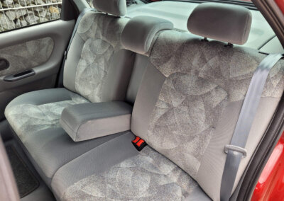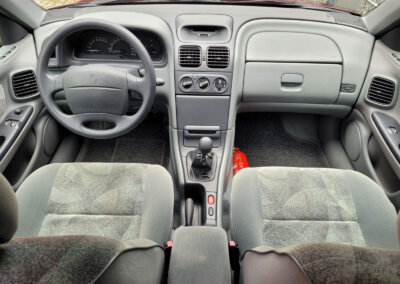 Wnętrze zachowane w idealnym stanie, widoczne jedynie minimalne ślady użytkowania. Tapicerka jest wciąż świeża, jak nowa, bez przetarć czy uszkodzeń. Żadne elementy nie były obszywane. Na wyposażeniu radio Kenwood z epoki. Plastiki matowe bez rys czy pęknięć. Brak uszkodzeń od słońca czy wilgoci.