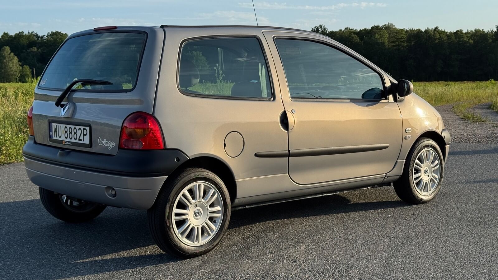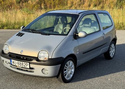 Oferuję samochód Renault TWINGO I z czwartej fazy produkcyjnej w topowej wersji INITIALE PARIS. Egzemplarz po ostatnim liftingu w kolorze perłowym beżowym (Beige Angora Nacre) pochodzi z roku 2004 i cechuje się oryginalnym bardzo dobrym stanem zachowania, brakiem korozji i bogatym wyposażeniem fabrycznym łącznie z klimatyzacją. Silnik 16v o 75 KM (D4F), najmocniejszy wariant w Twingo. Jako ciekawostka: w ówczesnych broszurach Renault podkreślało, że 16-zaworowy silnik D4F jest „owocem doświadczeń zdobywanych przez inżynierów Renault w Formule 1”. Strategia marketingowa marki chciała nadać sportowego i nowoczesnego wizerunku miejskim modelom, używając haseł „technologia prosto z torów Formuły 1 – teraz w Twoim Twingo” lub „inżynierowie F1 dla Twojej codzienności”.