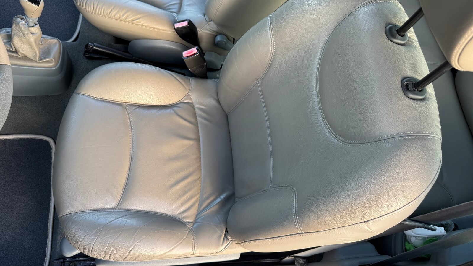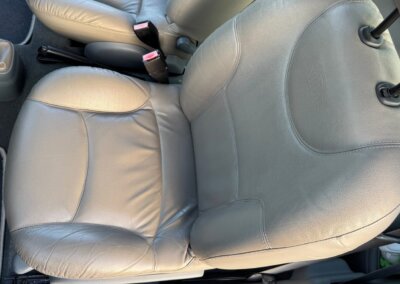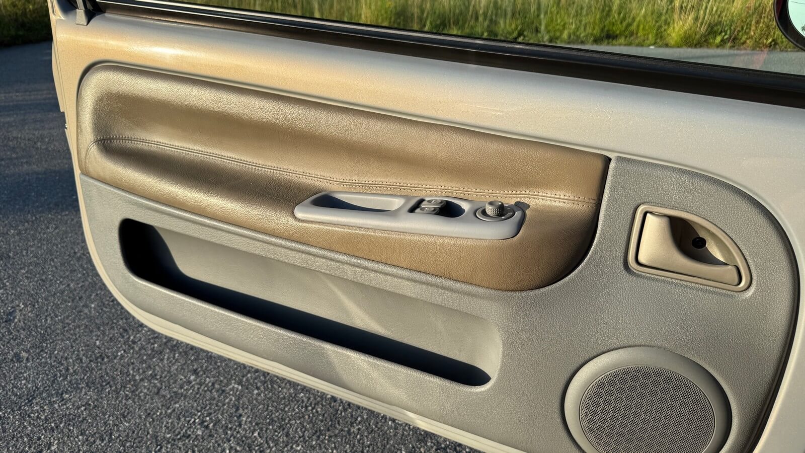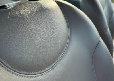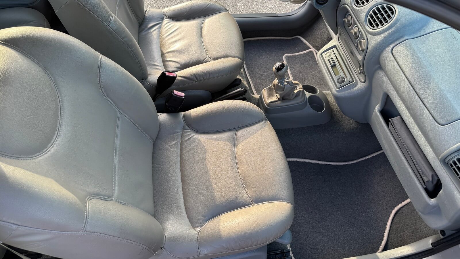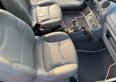 Skórzane jasne wnętrze Initiale Paris utrzymane w stanie bardzo dobrym, oryginalne, nieodnawiane, skóry fabryczne, nie były lakierowane. Wszystkie elementy wyposażenia są sprawne, podświetlenia deski rozdzielczej i wyświetlacza są wymienione. Auto wyposażone jest w klimatyzację. Fabryczny radioodtwarzacz CD w kolorze deski rozdzielczej.