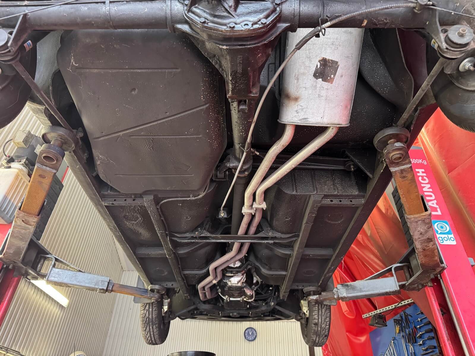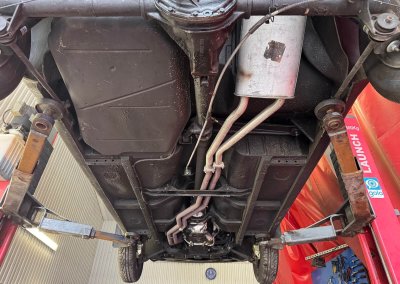 Nadwozie jest zachowane w idealnym stanie, całkowicie wolne od korozji, posiada wciąż fabryczny lakier. Widoczne tylko kilka niewielkich odprysków lakieru. Spód auta i komora silnika wzorowe, niektóre elementy wyglądają wciąż jak nowe. Elementy chromowane w idealnym stanie.