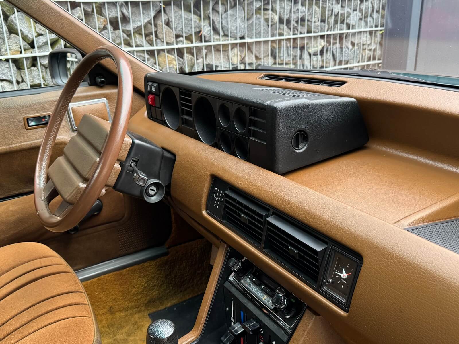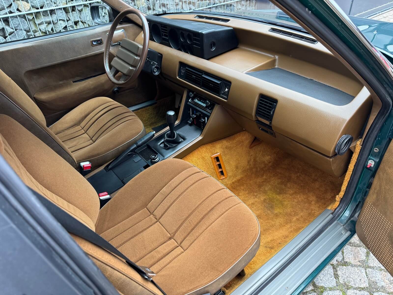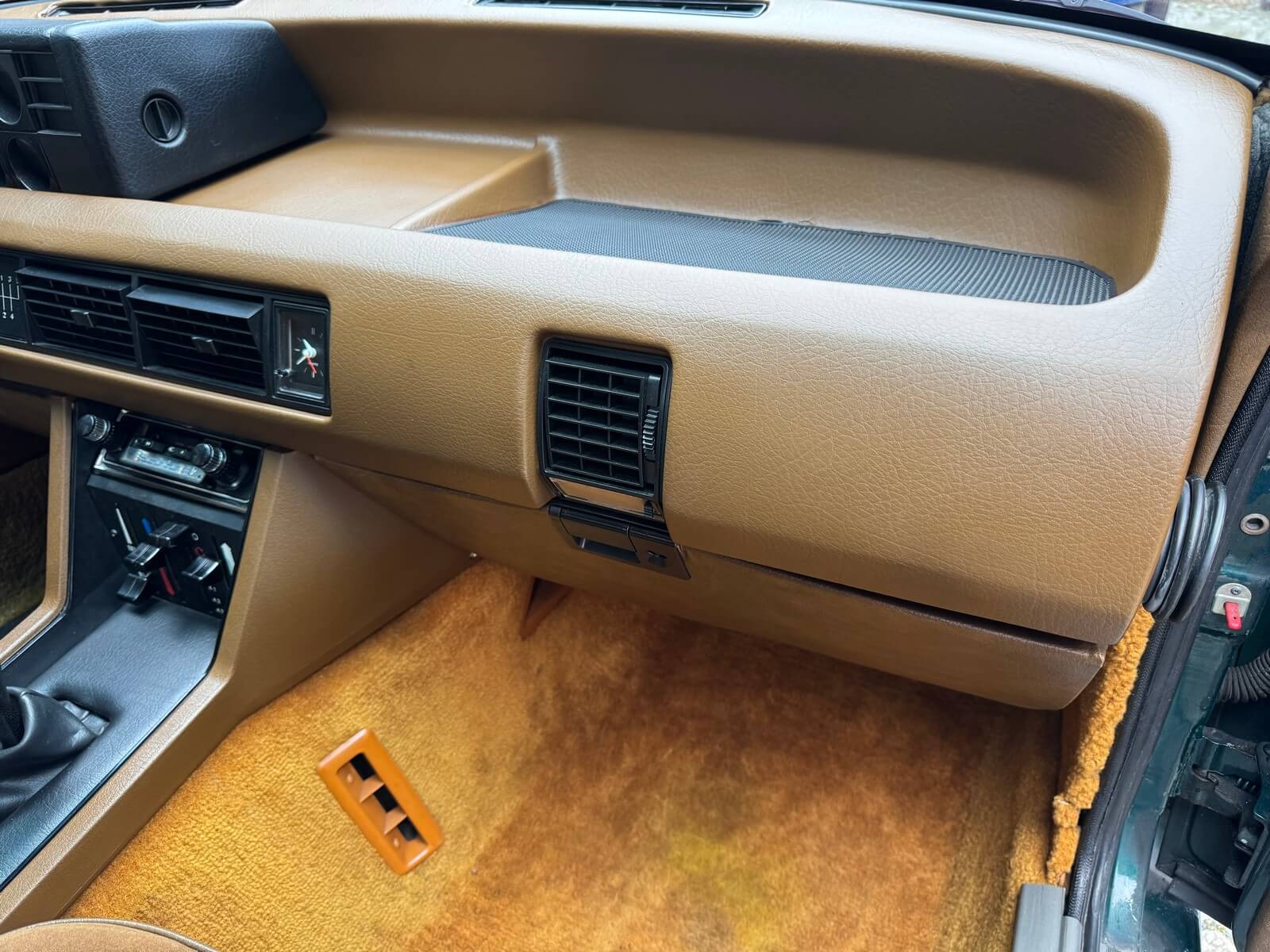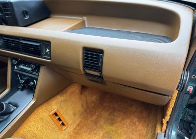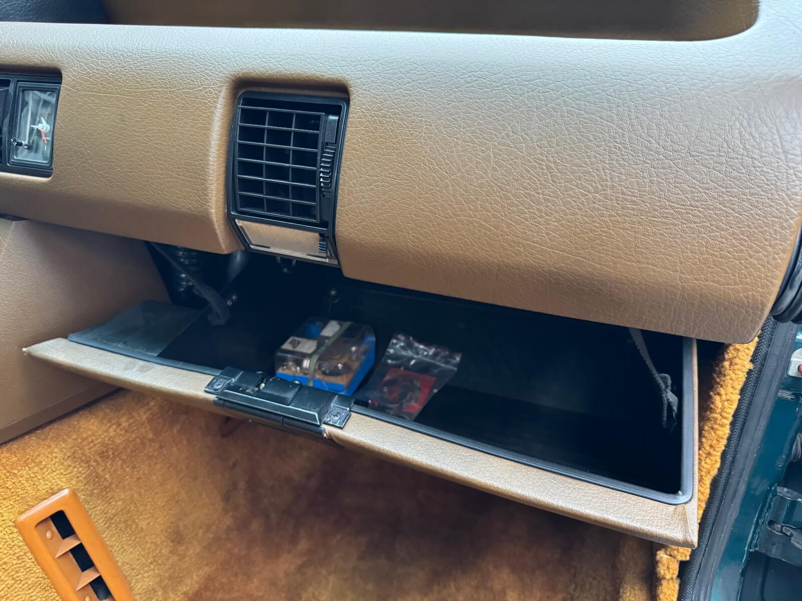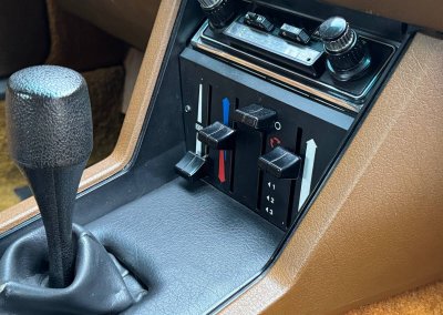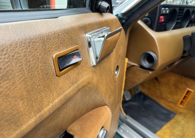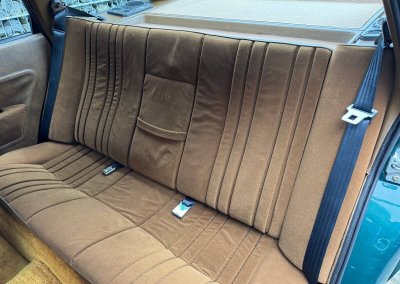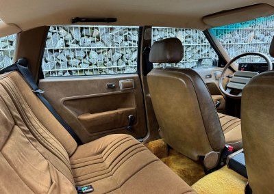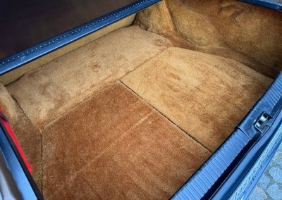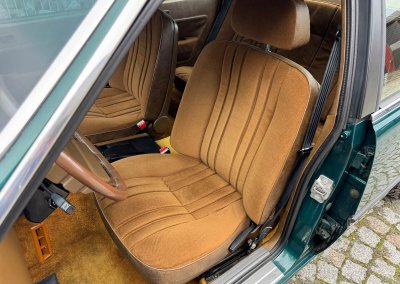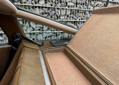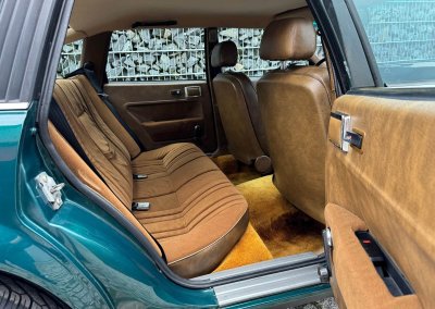 Wnętrze zachowane w idealnym stanie, z minimalnymi śladami użytkowania. Tapicerka nie wykazuje żadnych śladów zużycia, żadne elementy nie są powycierane, fotele wyglądają prawie jak nowe. Mimo wieku materiały mają wciąż żywy kolor. Radio Philips i głośniki Roadstar z epoki.