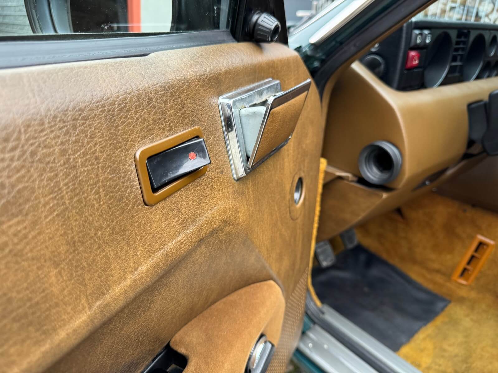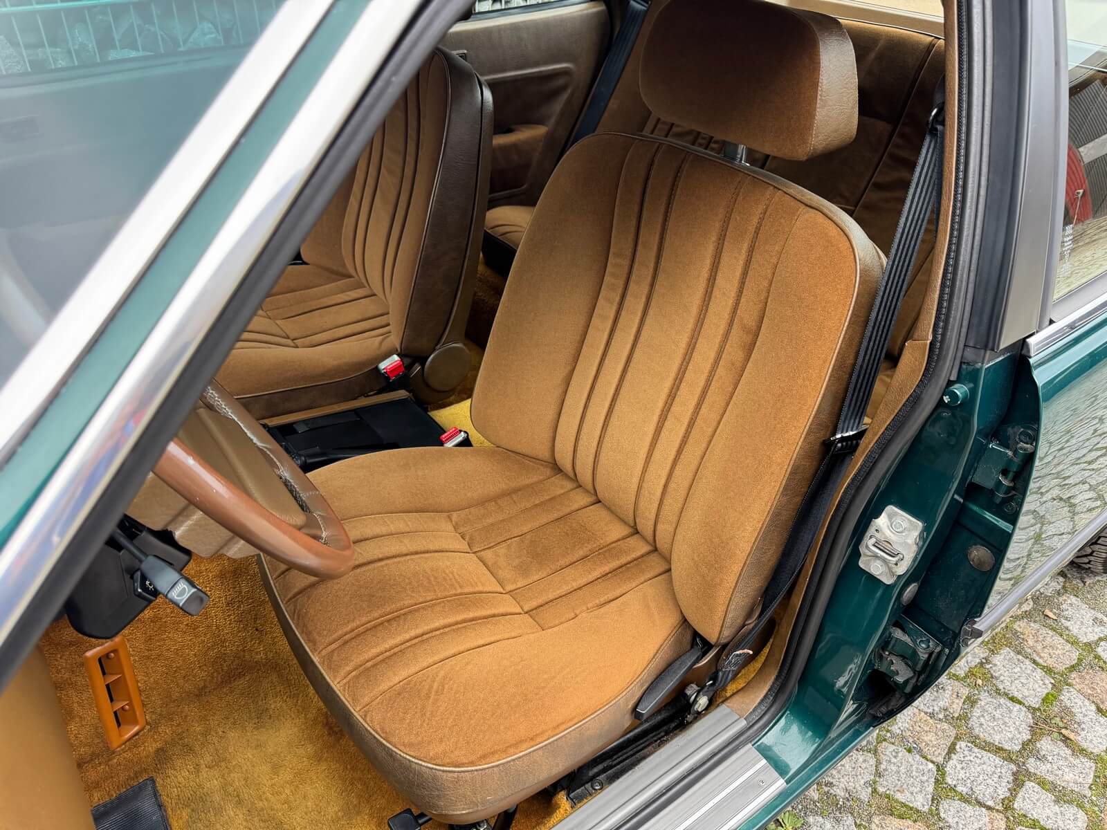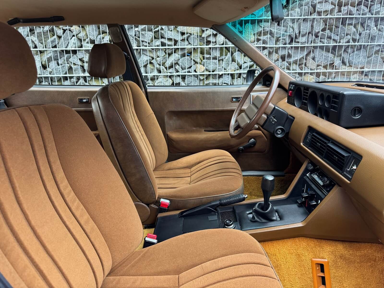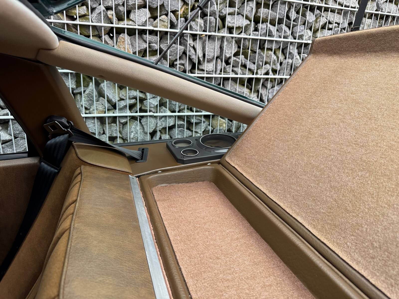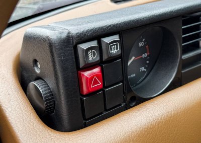 Wnętrze zachowane w idealnym stanie, z minimalnymi śladami użytkowania. Tapicerka nie wykazuje żadnych śladów zużycia, żadne elementy nie są powycierane, fotele wyglądają prawie jak nowe. Mimo wieku materiały mają wciąż żywy kolor. Radio Philips i głośniki Roadstar z epoki.