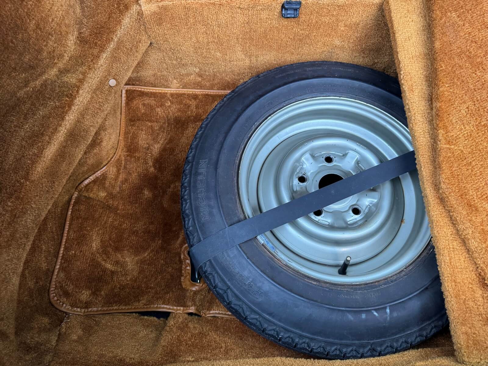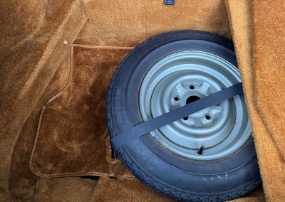 Felgi w idealnym stanie, bez widocznych uszkodzeń. Komplet prawie nowych opon Uniroyal, zamontowanych w zeszłym roku. W bagażniku koło zapasowe z fabryczną oponą oraz zestaw oryginalnych narzędzi. Pięknie zachowana wykładzina, materiał jak nowy. Wszystkie wnęki i podłoga bagażnika jak nowe.