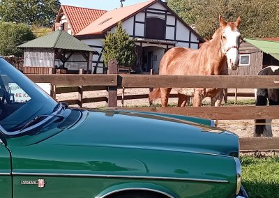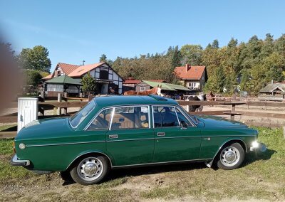 Posiada dokumentację przeglądów w Niemczech. Jeździ znowu od dwóch lat, więc wszystkie niedomagania zostały usunięte. Dużo części zapasowych. Ubezpieczony, sprawny, pali 12l/100km (trzy litry pojemności i 164 KM musi się z czegoś brać). Wspomaganie hamulców i kierownicy. Skórzana tapicerka, szyberdach, oryginalne radio.