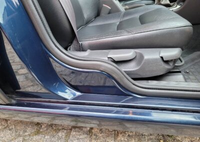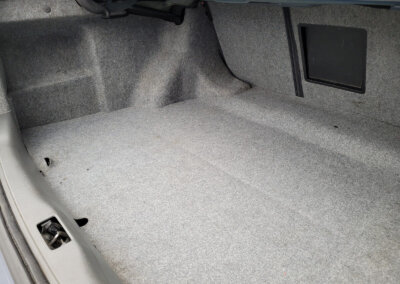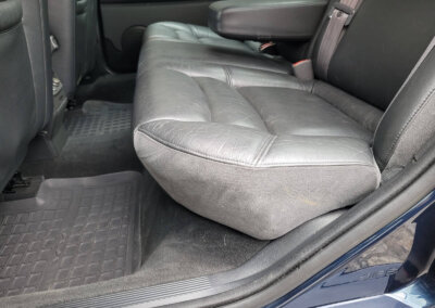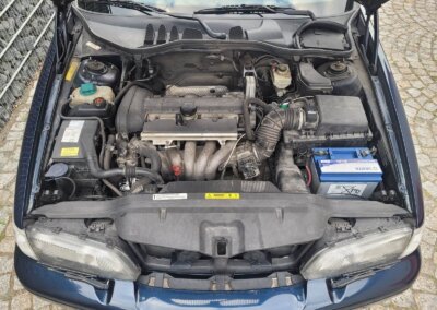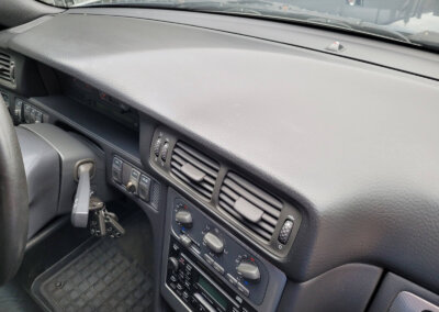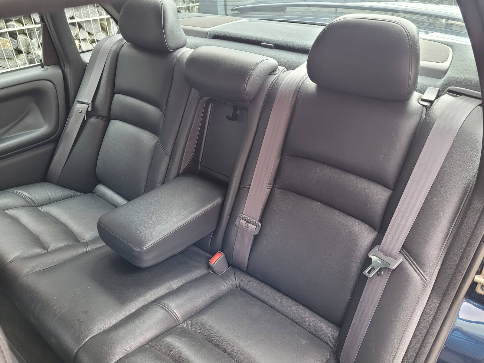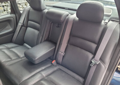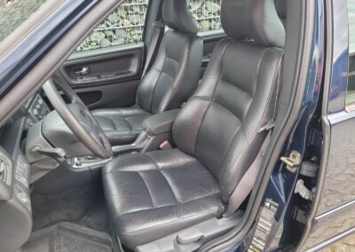 Wnętrze zachowane w bardzo dobrym stanie. Skórzana tapicerka bez przetarć czy uszkodzeń, małe ślady użytkowania na fotelu kierowcy. Żadne elementy nie były obszywane. Oryginalne dywaniki gumowe. Materiał na trzech boczkach lekko się odkleja.